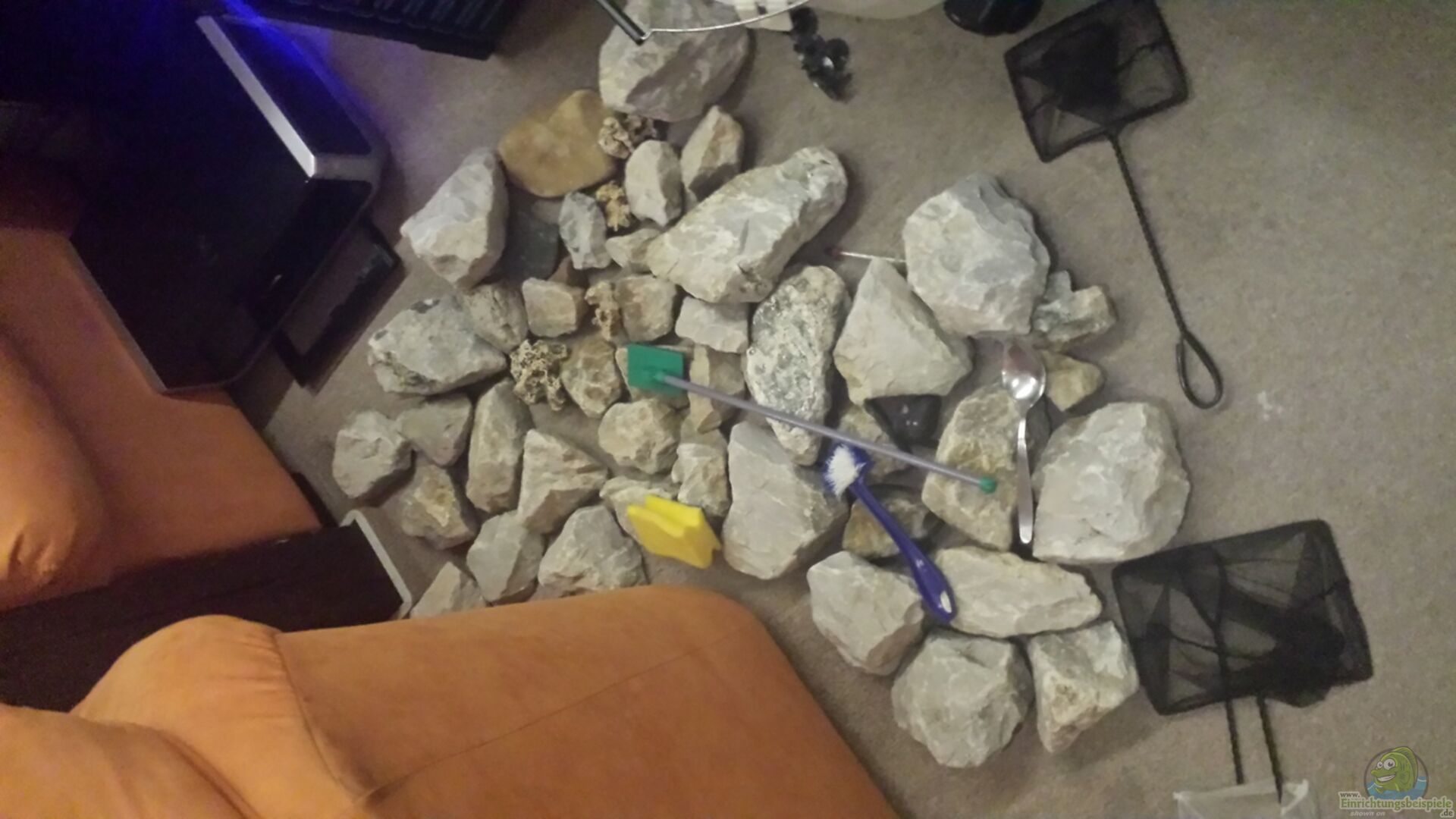 Die "Felsenaufbauten" bestehen aus ca. 60kg Granitgestein sowie ca. 20kg Lochgestein. Diese wurden frei aufeinander gelegt / verkantet und wie auf den Bildern des leeren Beckens zu erkennen ist. Diverse Höhlen am Bodengrund die wieder und wieder mit Höhlen nach oben hin aufgebaut wurden sollen den Malawis genug rückzugs Möglichkeiten geben.