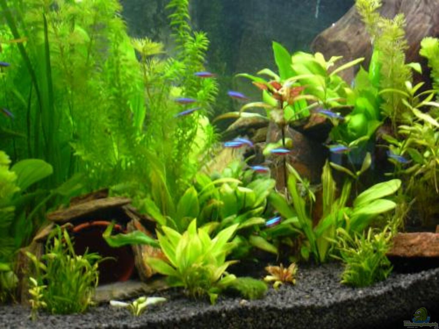 20 rote Neon, 9 Sternflecken-Salmler, 4 Panzerwelse ´Juli´, 2 Antennenwelse (2 x m), 1 rotes Guppy-Männchen, 1 Guppy-Weibchen, 3 Rüsselbarben, 3 blaue Platy (1 x m, 2 x w), 4 Prachtschmerlen, 1 Paar Kakadu-Zwergbuntbarsche (Stand: 13.04.2008)