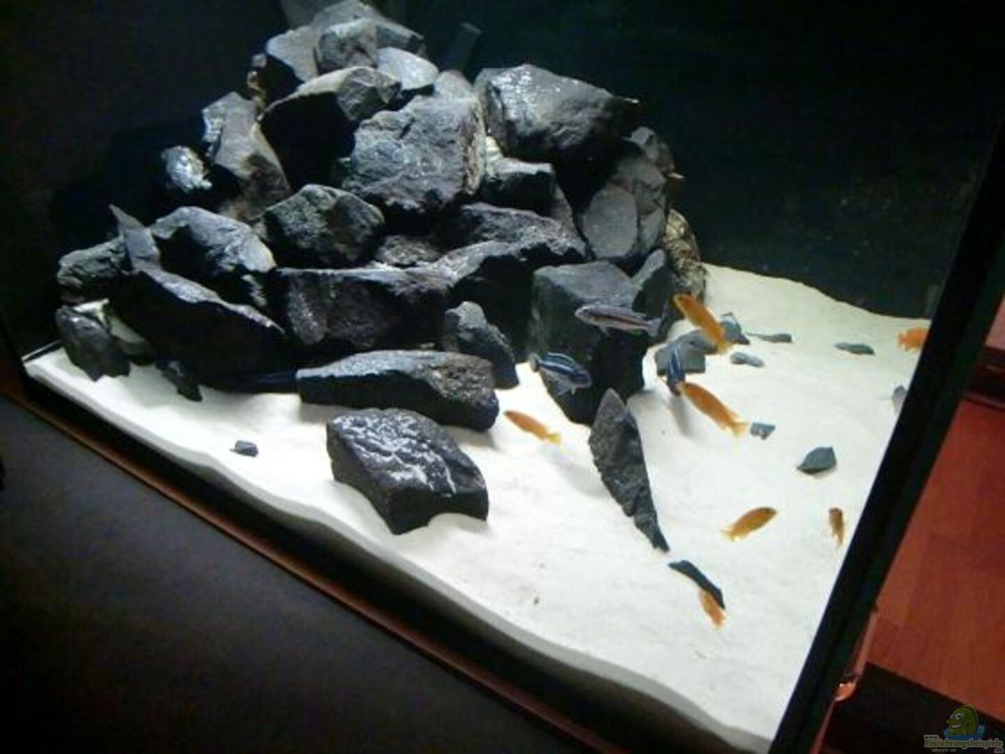-Sonderanfertigung aus 8mm Wei??glas. -Selbstgebauter Unterschrank aus 19mm Spanplatten. -1cm starke Isomatte als Unterlage des Aquariums. -Styroporplatten zum Schutz der Bodenscheibe -Der Filter befindet sich in einem extra Schrank