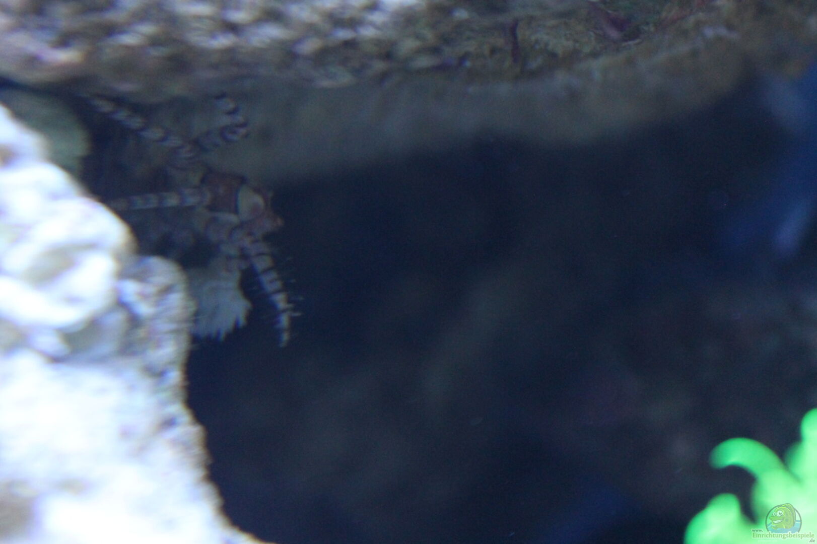 Alpheus ochrostriatus zusammen mit Cryptocentrus cinctus 1 Gobiodon histrio 1 Paar Amphiprion percula 1 Salarias fasciatus 1 Lybia tesselata 3 Lysmata debelius ein paar Einsiedler (Calcinus laevimanus) Tectus conus Schnecke
