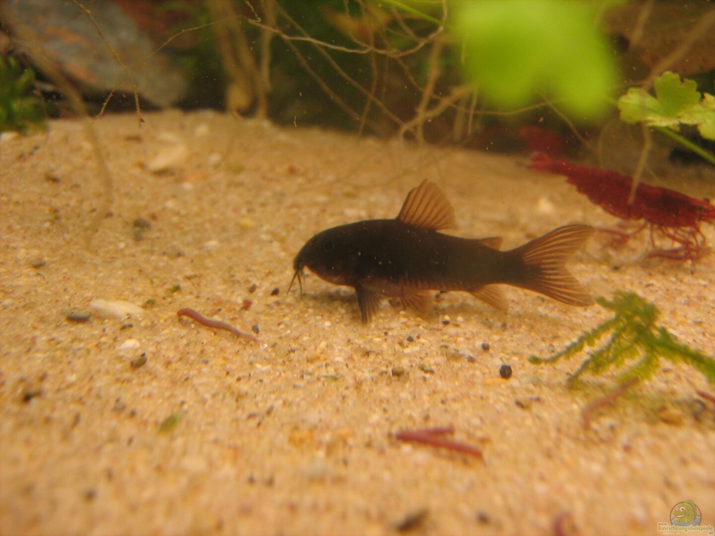 - 14 Corydoras schultzei "black" (schwarze Panzerwelse) - 11 Dornaugen - 7 Perlhuhnbärblinge (ich hab aktuell schon 25 Jungtiere im Keilbecken schwimmen, wenn sie gro?? genug sind wird hier deutlich aufgestockt) 13 Tatia Perugia (es sind keine Bodenfische, sie schwimmen eigentlich nur an der Oberfläche herum) - viele viele RedFire Garnelen (ich fange monatlich um die 100 Garnelen raus die vermehren sich hier wirklich sehr gut) Die Fische kann ich nicht zählen es verstecken [...]