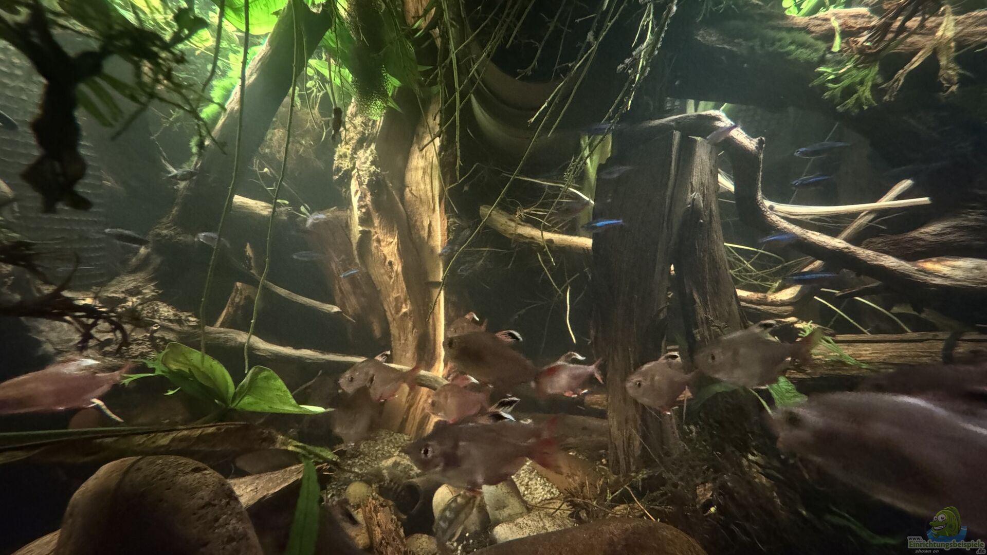 Die Gesamtlänge verteilt sich auf zwei rechtwinklig angeordnete Schenkel von 300cm und 160cm. Der Unterbau ist ein Stahlgestell mit Einbauteilen aus dem Küchenbau. Es geht mir darum ein grundsätzlich pflegeleichtes "urkaubsfestes" Aquarium zu haben. Im Paludarium leben sechs Frösche Amnirana Gakamensis, zu deutsch Galam Weißlippenfrasch. Eigentlich hätte ich Baumsteiger/Pfeilgiftfrösche bevorzugt, aber die sind nicht schwimmfähig, also für das Paludarium nicht geeignet, außerdem [...]