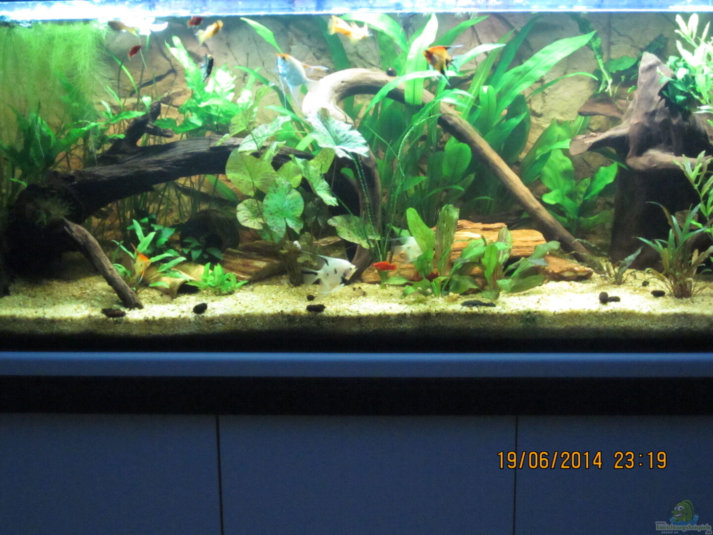 Der Unterschrank ist ein Eigenbau des Erstbesitzers aus Kanthölzern, einer Küchenarbeitsplatte und einer Aquarienunterlage von JBL. Die drei Türen die die Technik und viele Utensilien verbergen sind aus Sperrholz, mit handesüblichen Möbelgriffen aus Alu und werden mit Magneten an den Kanthölzern gesichert.Hier hat sich der Erbauer richtig Gedanken gemacht, vielen Dank.