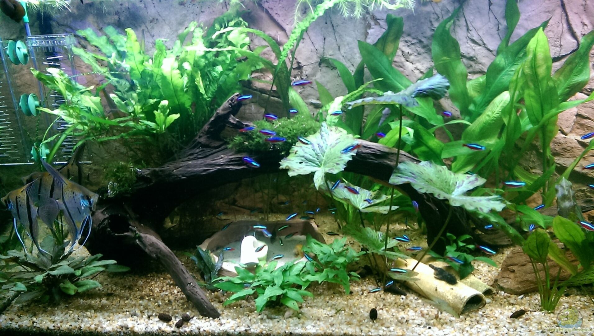 Der Unterschrank ist ein Eigenbau des Erstbesitzers aus Kanthölzern, einer Küchenarbeitsplatte und einer Aquarienunterlage von JBL. Die drei Türen die die Technik und viele Utensilien verbergen sind aus Sperrholz, mit handesüblichen Möbelgriffen aus Alu und werden mit Magneten an den Kanthölzern gesichert.Hier hat sich der Erbauer richtig Gedanken gemacht, vielen Dank.