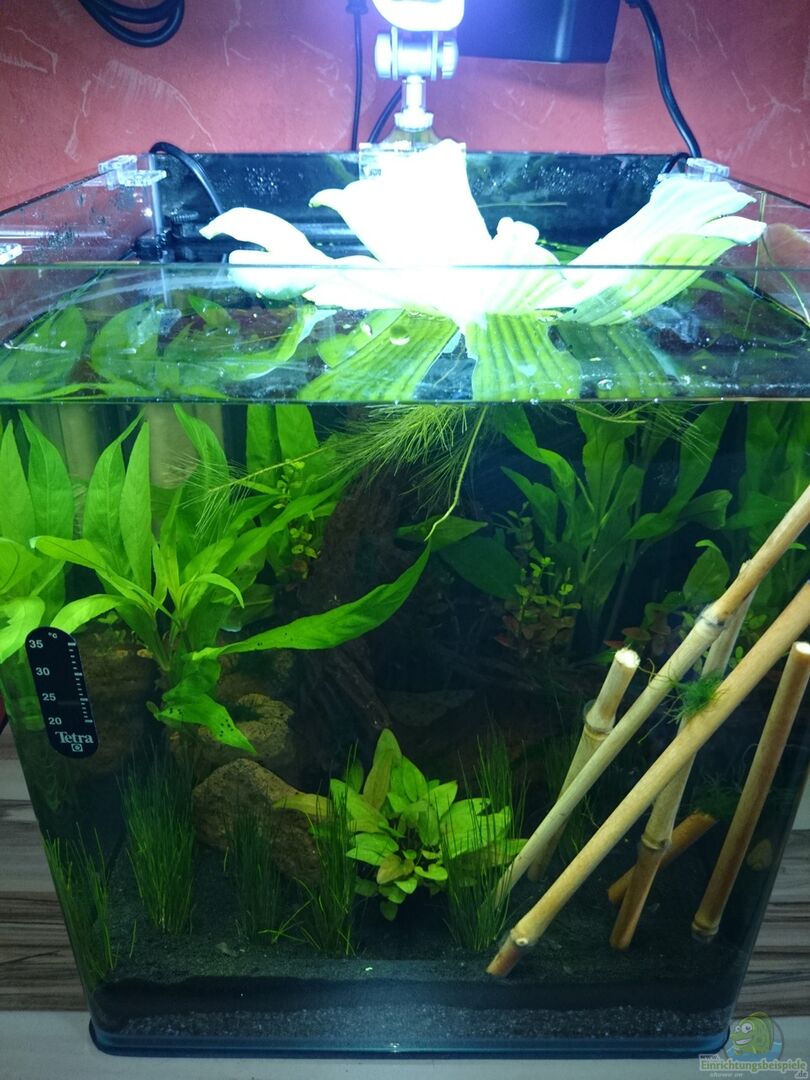 Als "Start-Set" kommt ein Dennerle NanoCube Complete Plus zum Einsatz. Lieferumfang: Aquarium, Abdeckscheibe, schwarze Rückwandfolie, Schaumstoffunterlage, Nano Eckfilter, Nano Beleuchtung, Tagesdünger, Wasseraufbereiter, Vitalstoffe für Garnelen, Crusta Gran Garnelenfutter, Nano Garnelenkies Sulawesi Black, Nano DepotMix Nährboden, Nano Thermometer