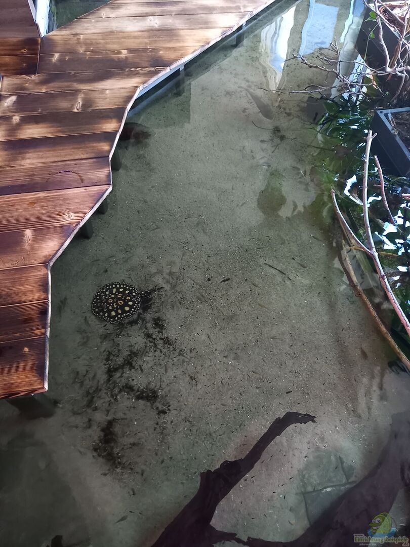 2-schichtig verfliest und mit epoxidharz versiegelt. Gestelle aus Edelstahl. Naturholzboden auf dem Steg. Unter der Couch ist alles ein Filter. Die Becken sind miteinander verbunden im wasserkreislauf und ein stetiger wasserwechsel ist angeschlossen.