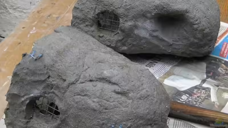 gut über 100kilo schwarzer Basalt der vom vorderen Drittel bis über die Wasseroberfläche nach hinten hin gestapelt wurde und mit ausreichend Rückzugsmöglichkeiten für die Barsche versehen ist. Die Steine liegen auf 8mm PMMA Scheiben um den Druck gleichmä??iger zu verteilen. Geschäumte Seitenwände im Rifflook *sind von hinten mit einer Oberfräse eingefräst um die Edelstahlleitungen zu verbergen und mit Aquariensilikon eingeklebt Im Bau: Zwei Steine um die Strömungspumpen [...]