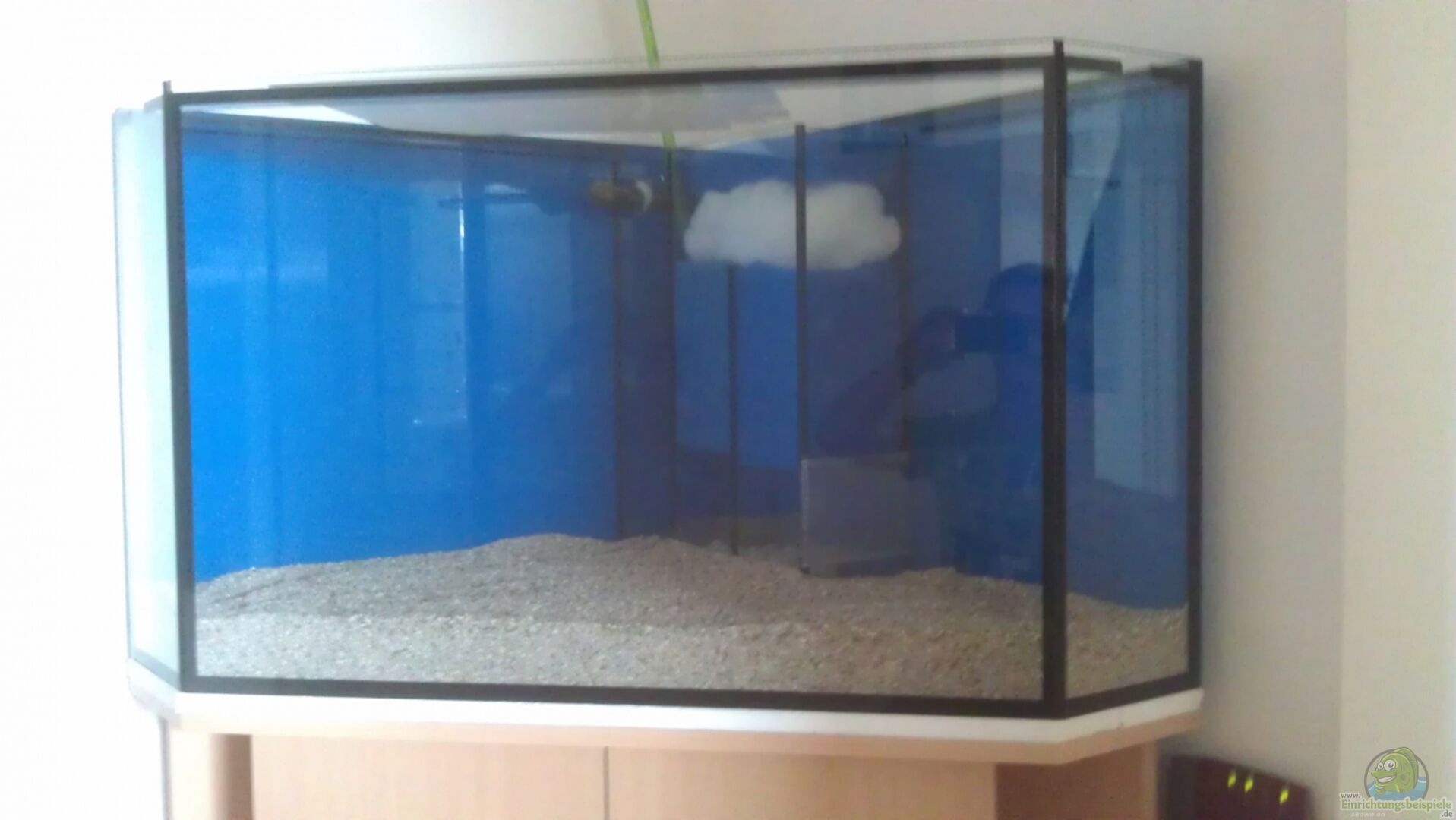 Delta-Aquarium (Spezialanfertigung) mit 275 Liter Fassungsvermögen und passendem Unterschrank. Schenkellänge 80, Höhe 60.