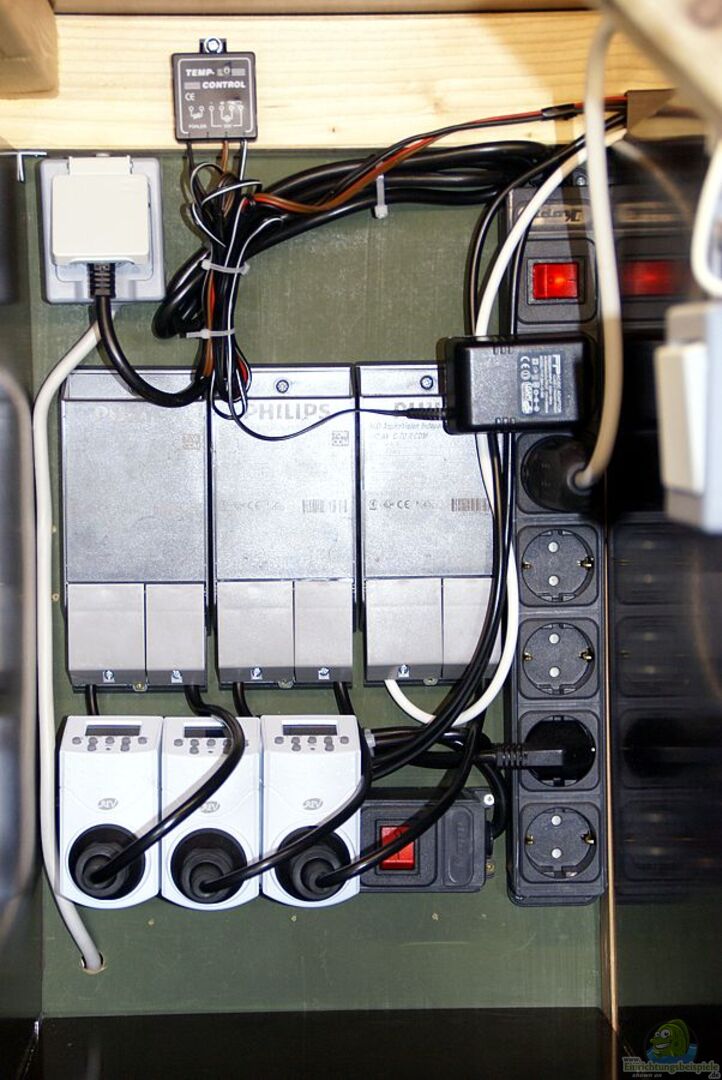 CO2-Anlage: 2 KG CO2-Flasche, JBL Taifun CO2-Reaktor im Ablaufschacht, alte SERA Seramic pH-Steuerung.
