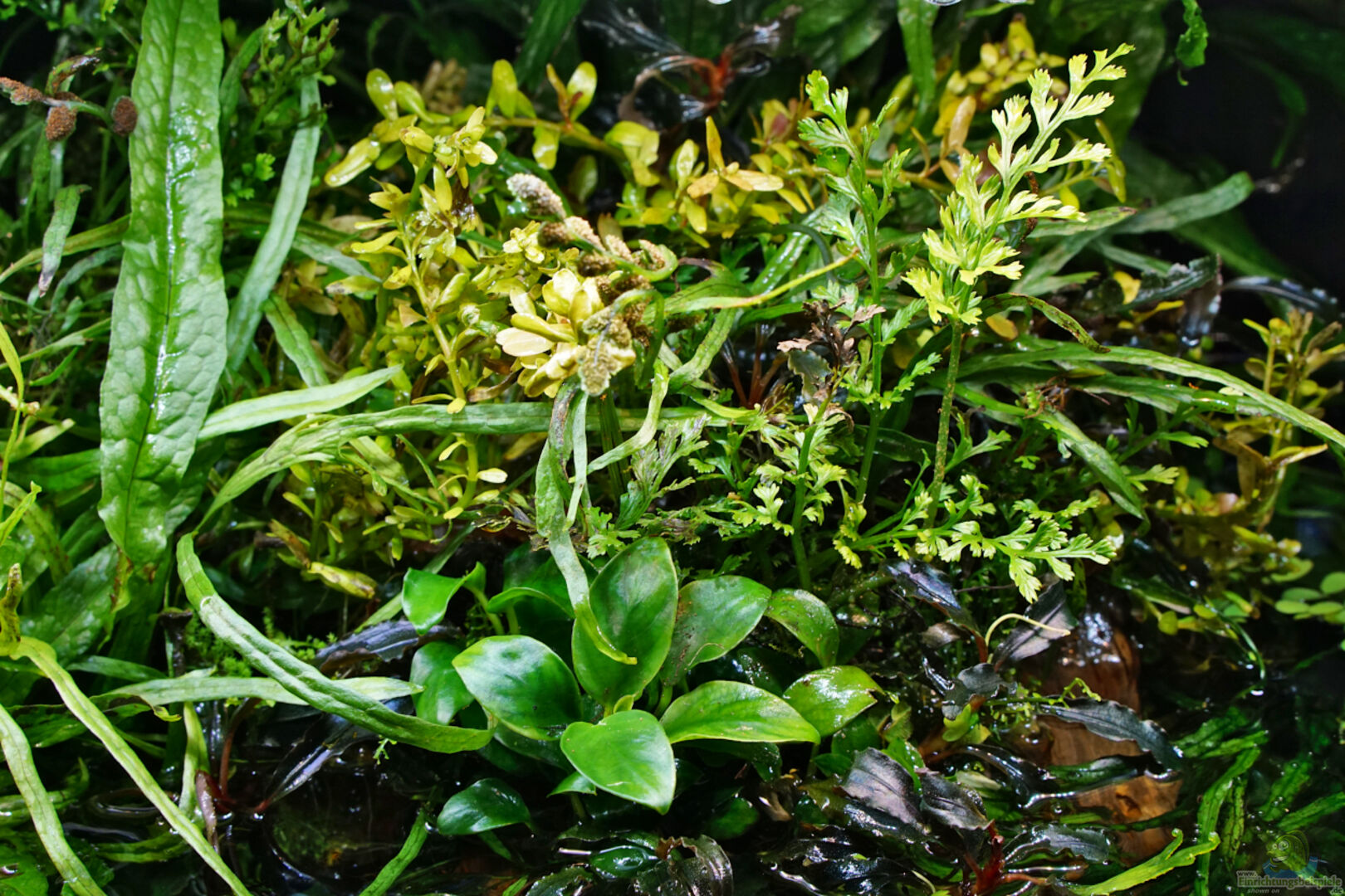 1. Bucephalandra sp. 'Kedagang' (emers & submers) 2. Hygrophila pinnatifida (emers & submers) 3. Rotala rotundifolia 4. Anubias barteri var. nana 'Petite' 5. Microsorum pteropus "Needle Leaf" 6. Hemianthus callitrichoides "Cuba" (emers) 7. Riccardia spp. (emers) 8. Fissidens fontanus (emers) 9. Bolbitis heteroclita "difformis" (emers) 10. Cryptocoryne wendtii 11. Cryptocoryne ?? willisii "nevillii" 12. Cryptocoryne [...]