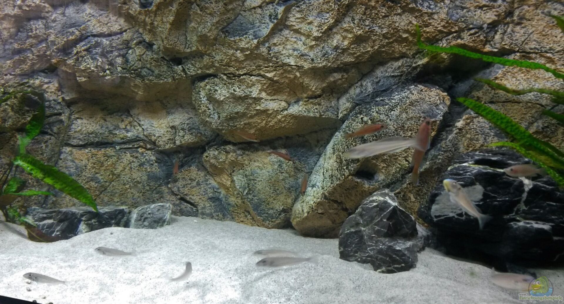 Paracyprichromis nigripinnis "blue neon" (2/6) Enantiopus melanogenys "Kilesa" (4/6) Cyprichromis leptosoma (4/14) Ophtalmotilapia ventralis (2/3) Neolamprologus multifasciatus (ca. 6/14 und viele Jungfische) Bei der Auswahl der Fische habe ich darauf geachtet, sowohl Tiere der Sandzone als auch Höhlen- und Felsenbewohner einzusetzen. Ausserdem wollte ich mit den Paracyprichromis einen freidlichen Schwarmfisch im Becken haben. Die Schneckenbarsche hielt ich schon [...]