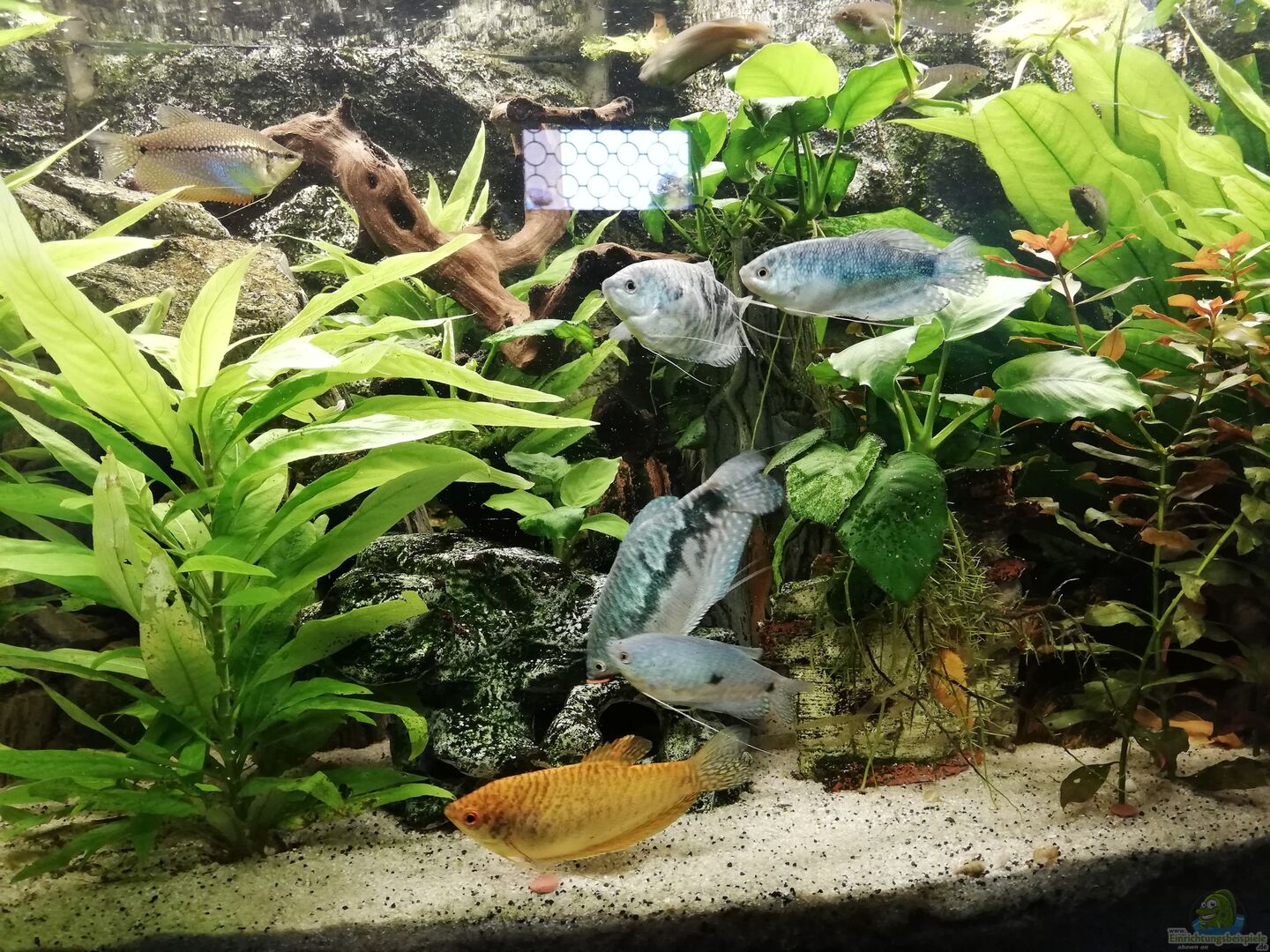 Besatz Grosses Becken: 5x Goldener Antennen welse, 5x panzerwelse, 2x grüner fransenlippler geschlecht unbekannt.3x Mosaik fadenfische., 4x Fadenfisch gelb, rot und 2x blau und 12 paradiesfische 11 aus einer nachzucht hier, das weibchen leider nach der eiablage gestorben, 5x Prachtschmerlen noch klein.Die Faden und Paradiesfische und die goldfarbenen Welse wohl auch zumindet tut sich da mit der grösse nix mehr. sind ausgewachsen Seit ein paar Wochen eine unbekannte anzahl an Gold Antennen [...]