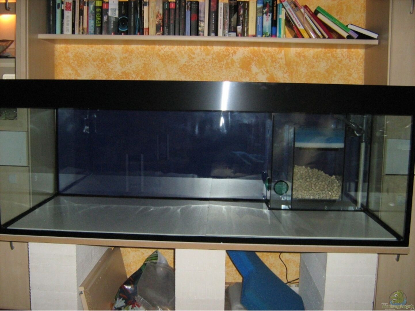 Das Becken wurde aus 8mm Glas gefertigt und die Bodenplatte hat 10 mm, es ist Wulst verklebt mit einer Sicherheitsnaht. Die Abdeckung ist aus stabilen Kuststoff und mit Glasplatten unterlegt. Das Becken steht auf 3 Säulen aus Ytong Steinen vorauf eine 22 mm MDF Platte liegt und natürlich eine Sicherheitsunterlage.
