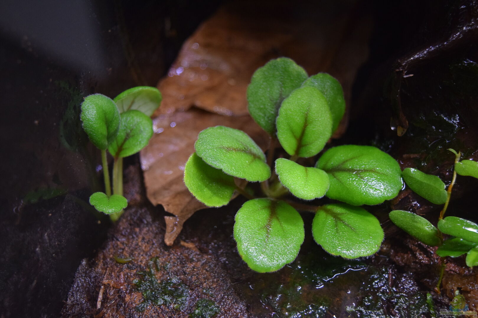 Ferns/Farne: Pyrrosia lanceolata, Selaginella unicata, Polypodium formosanum, Microgramma nitida Bromeliads/Bromelien: Neoregelia Hannibal, Neoregelia Fireball, Cryptanthus microglazioui Bodendecker/Ground plants: Bucephalandra spec. Green Velvet, Anubias bartei var. nana Mosses/Moose: Taxiphyllum barbieri, Leptodictyum riparium, Orchids/Orchideen: Barbosella cogniauxiana, Pleurothallis macroblepharis, Kletterer/Climbing plants: Ficus scandens, Epipremnum spec., Ficus punctata