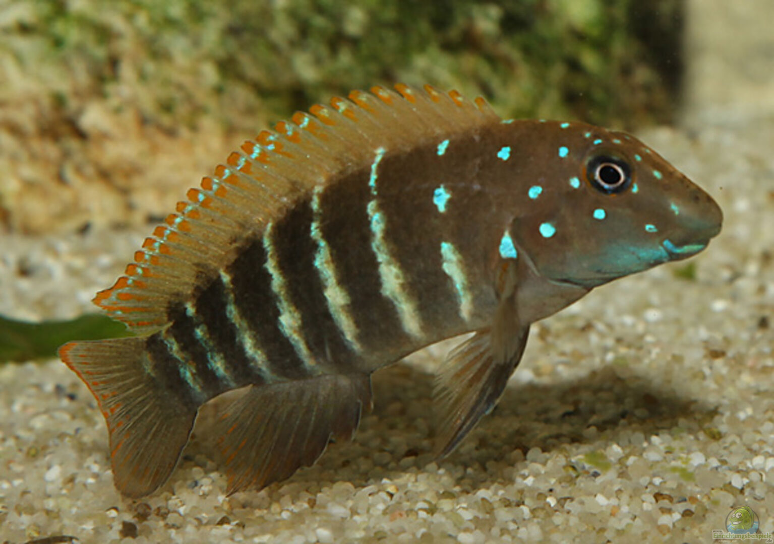 Hier findest du wichtige Infos zur Haltung und Beispiele für die Einrichtung eines Aquariums für Spathodus erythrodon (Blaupunkt-Grundelbuntbarsch).