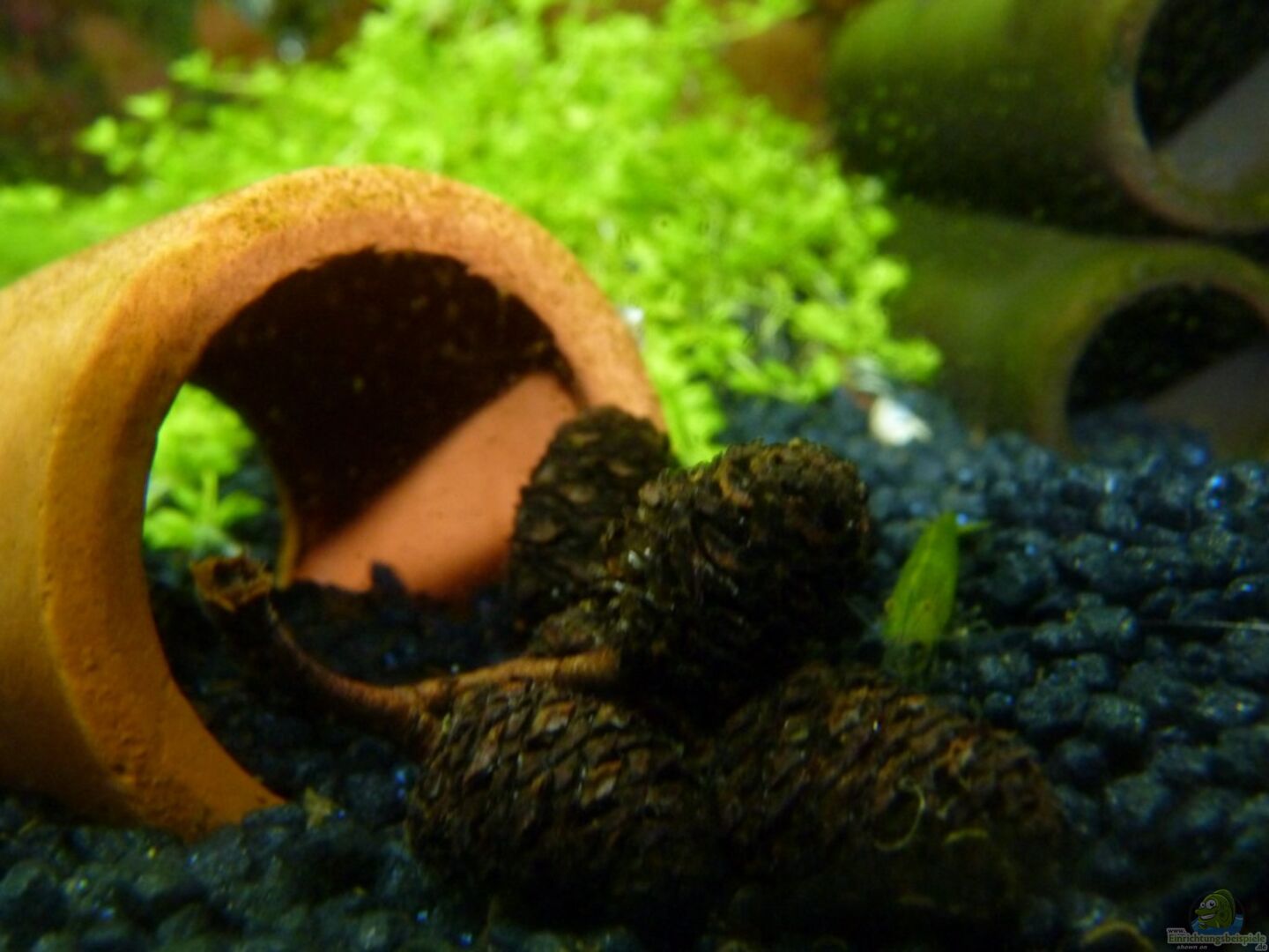1 Wurzel 1 Mooskugel 1 Dennerle Nano 3-fach Röhre 1 kleiner Tontopf 1 Dennerle Garnelen-Felsen 1 Seemandelbaumblatt Erlenzapfen; übrigends habe ich das mit den Erlenzapfen erst hier auf EB gelernt. Ich wu??te vorher nicht genau wie Erlen aussehen, bzw. wo man sie finden kann. Erst ein anderer User auf EB erklärte mir, da?? Erlen hauptsächlich in der Nähe von Bächen stehen. Also machte ich mich auf die Suche und seit dem kenne ich sogar mehrere Plätze ganz bei mir in der [...]
