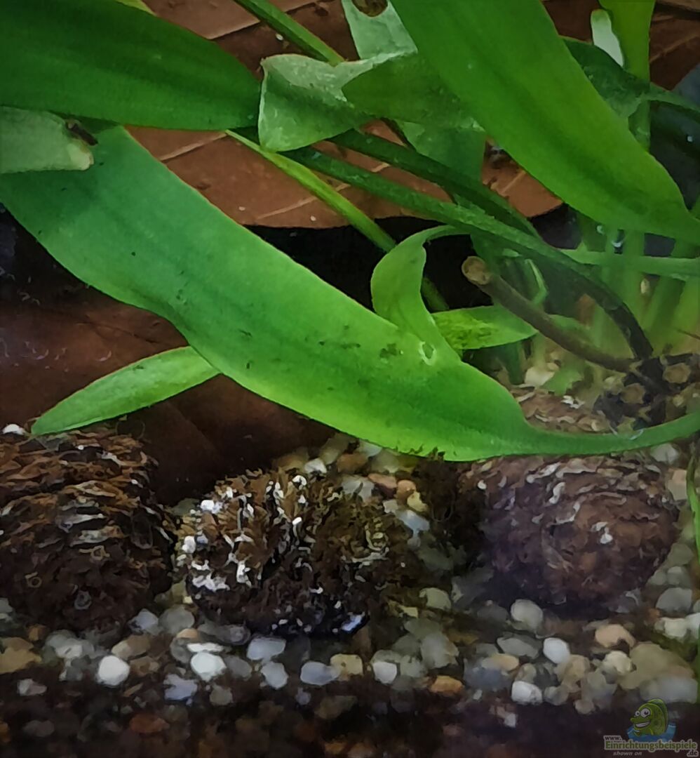 2 Spiderwoodwurzeln (Echtholz) Erlenzapfen Stein Afika green Riverpebbles kleinere Basaltsteine 1 kleinerer grauer Quarzstein ( mal schauen ob er die Härte nach oben treibt, dann wird er wieder entfernt. Buchenlaub
