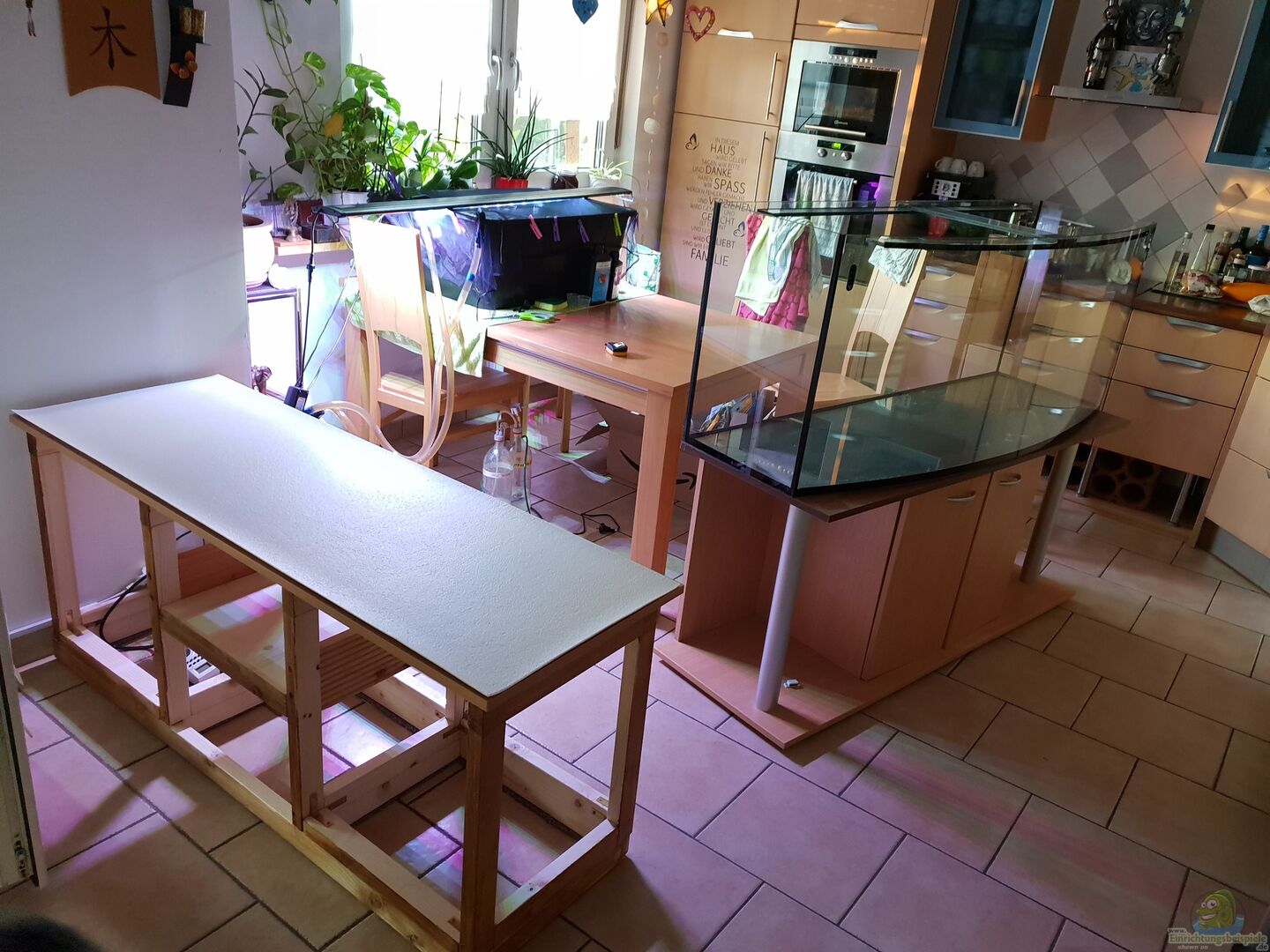 Raumteiler Küche/Wohnzimmer, Unterbau Massivholz Konstruktion mit Beschichtet 19mm Buche Dekorplatten verkleidet, halbe Rückwand mit Linoleum Boden Steingrau verblendet, alles Selbstgebaut, darunter Platz für Technik, Filter und Zubehör. Das ganze Becken liegt auf 2.8mm Lärchenbretter darüber 19mm Deckplatte Buche Dekor Das Aquarium ist mit 4 angefertigten Glasplatten abgedeckt Der Led Alubalken von Amazone ist Preislich unschlagbar! Wir wünschen Euch viel Erfolg bei Eurem eigenen [...]