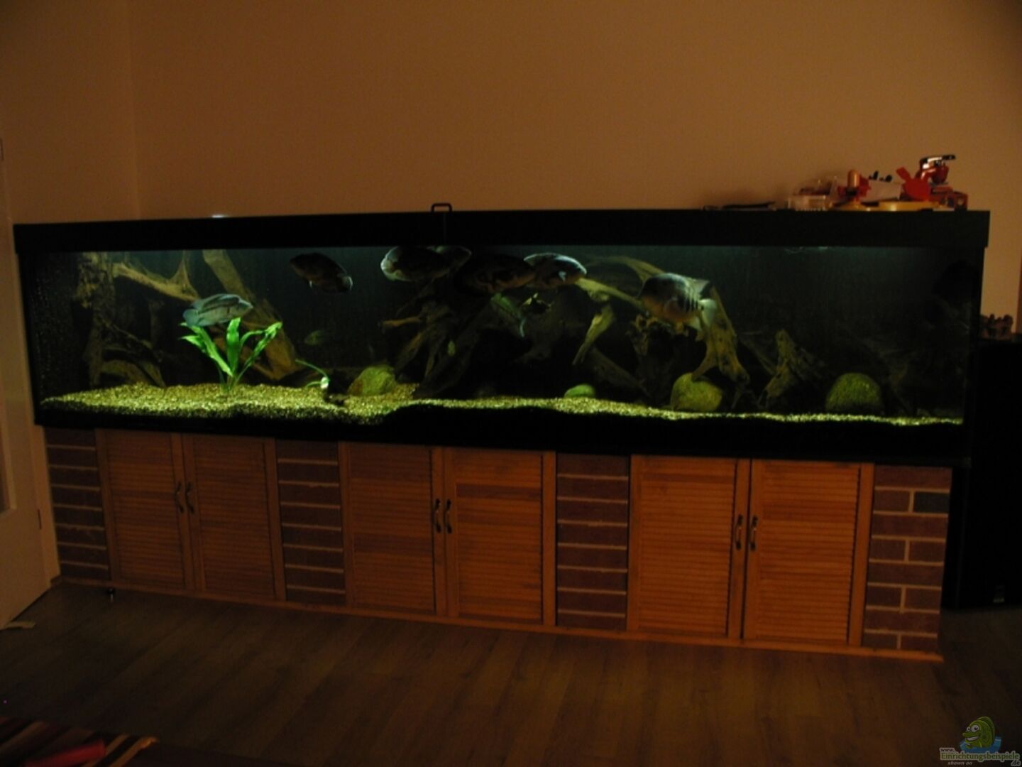 Das Becken besitzt keine Bohrung. Es ist mit schwarzem Silikon wulstverklebt. Die Rückseite und die linke Seite sind mit Strukturrückwänden von Juwel beklebt.