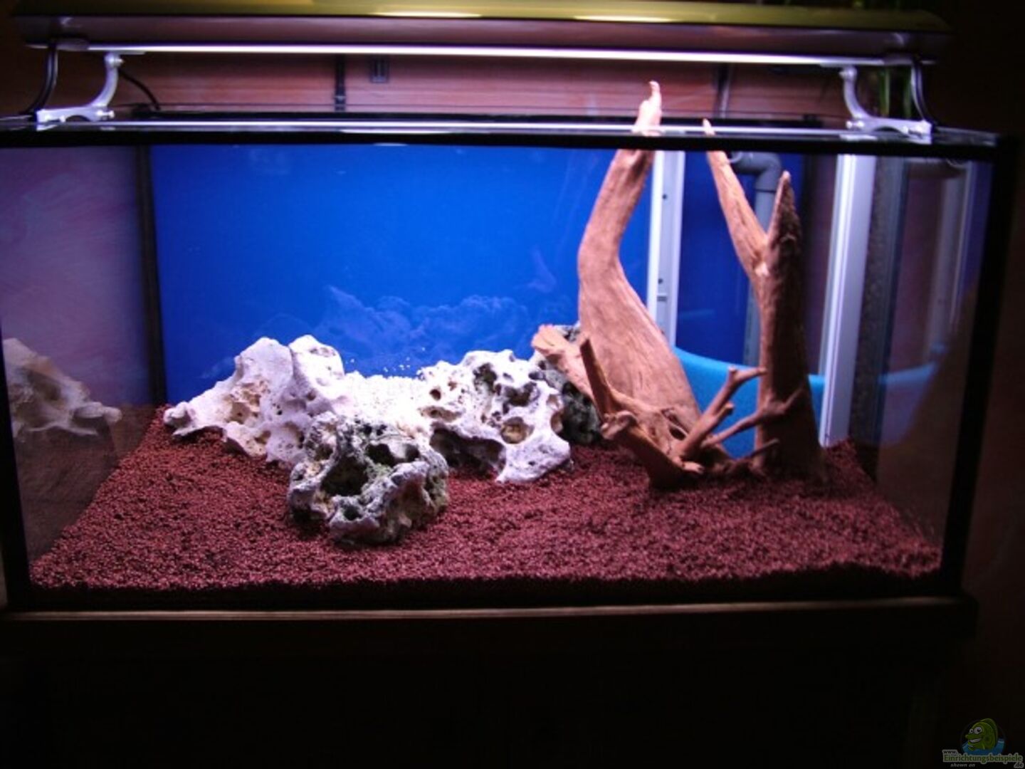 zur dekoration habe ich etwas lochgestein genommen und vorne rechts im becken ist eine gro??e moorkienwurzel zu sehen