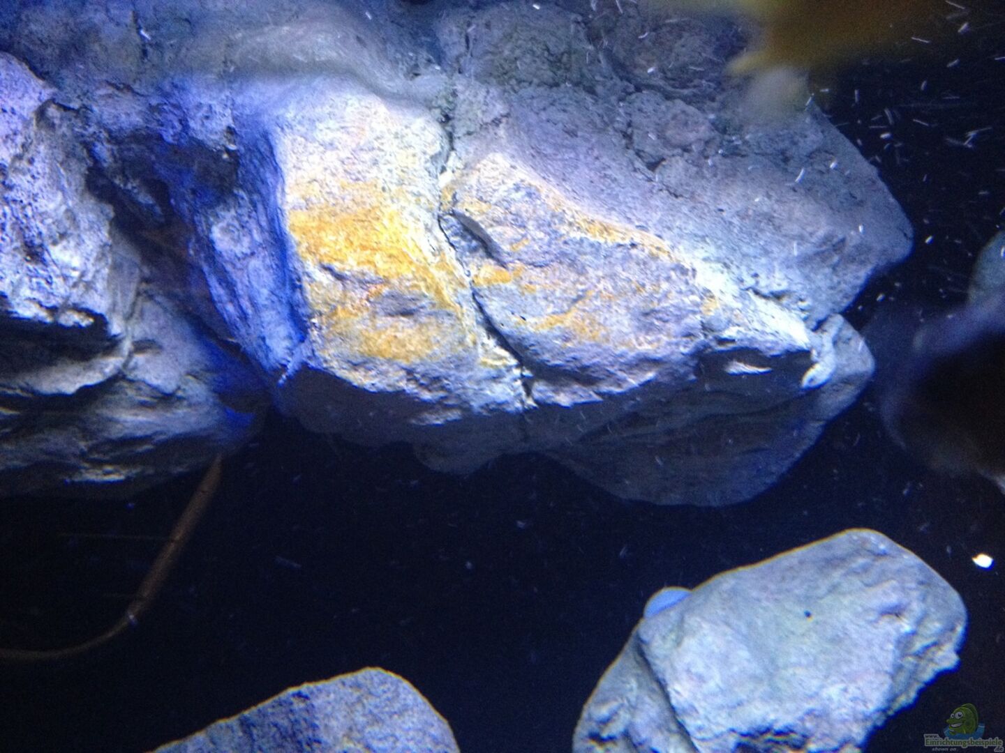 1x Rock Zolid Modul G 1x Rock Zolid Modul H 1x Rock Zolid River Stone Q ca. 50 Kilo dunkler Basalt Weiters wurden von vorn gesehen, die linke Seitenscheibe und die Rückwand mit schwarzer Folie beklebt. Das Becken hat dadurch einen schönen dunklen Eindruck- genau so, wie es der Beckenname verspricht. Mittlerweile hat sich eine schöne Patina gebildet und das ganze sieht somit auch natürlicher aus. Ein paar Stücke eines Buchenastes, der mehr als 1 Jahr getrocknet wurde [...]