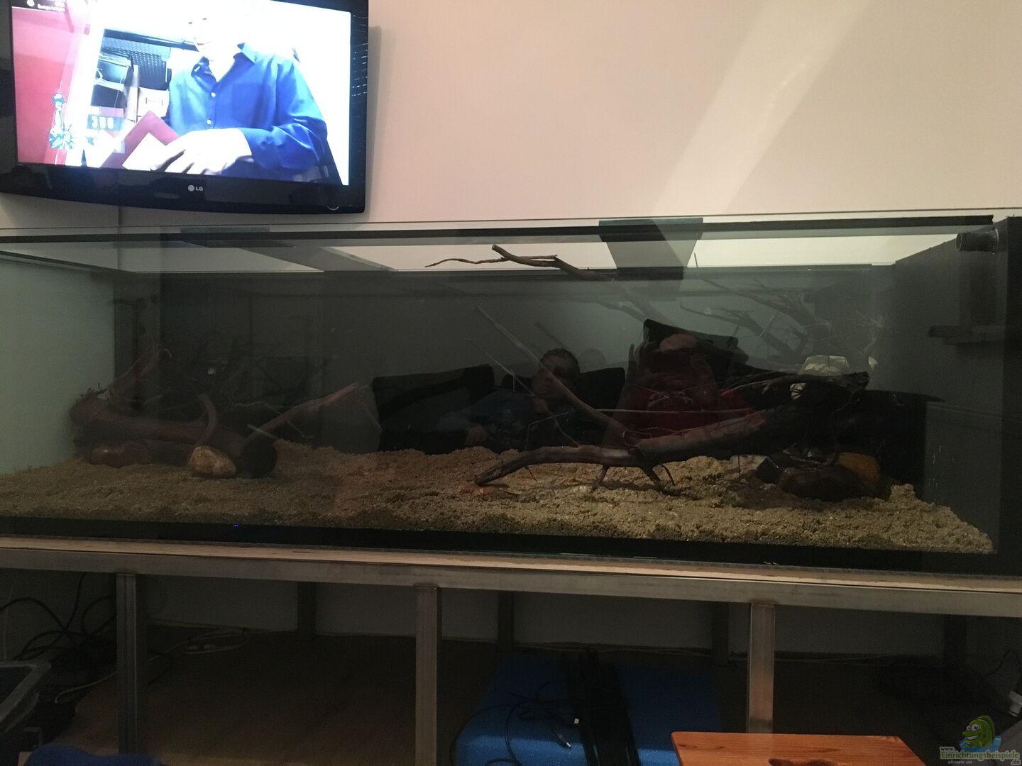 - Unterschrank selbst gebaut aus 40x40 mm Nierosterstahl - Aufbau : Fallschutzmatte - Siebdruckplatte 21mm - Unterschrank - Dachfolie - Siebdruckplatte 21mm - Aquariumunterlagsmatte - Becken - Bohrung im Boden für Wasserwechsel - Mehrkammerinnenfilter mit 4 Kammern über die ganze Tiefe - Becken wurde genau nach meinen Wünschen angefertigt und bis vors Haus geliefert > mit 6 Mann und meiner Ehefrau kam Becken schlie??lich durchs Fenster in den richtigen Raum