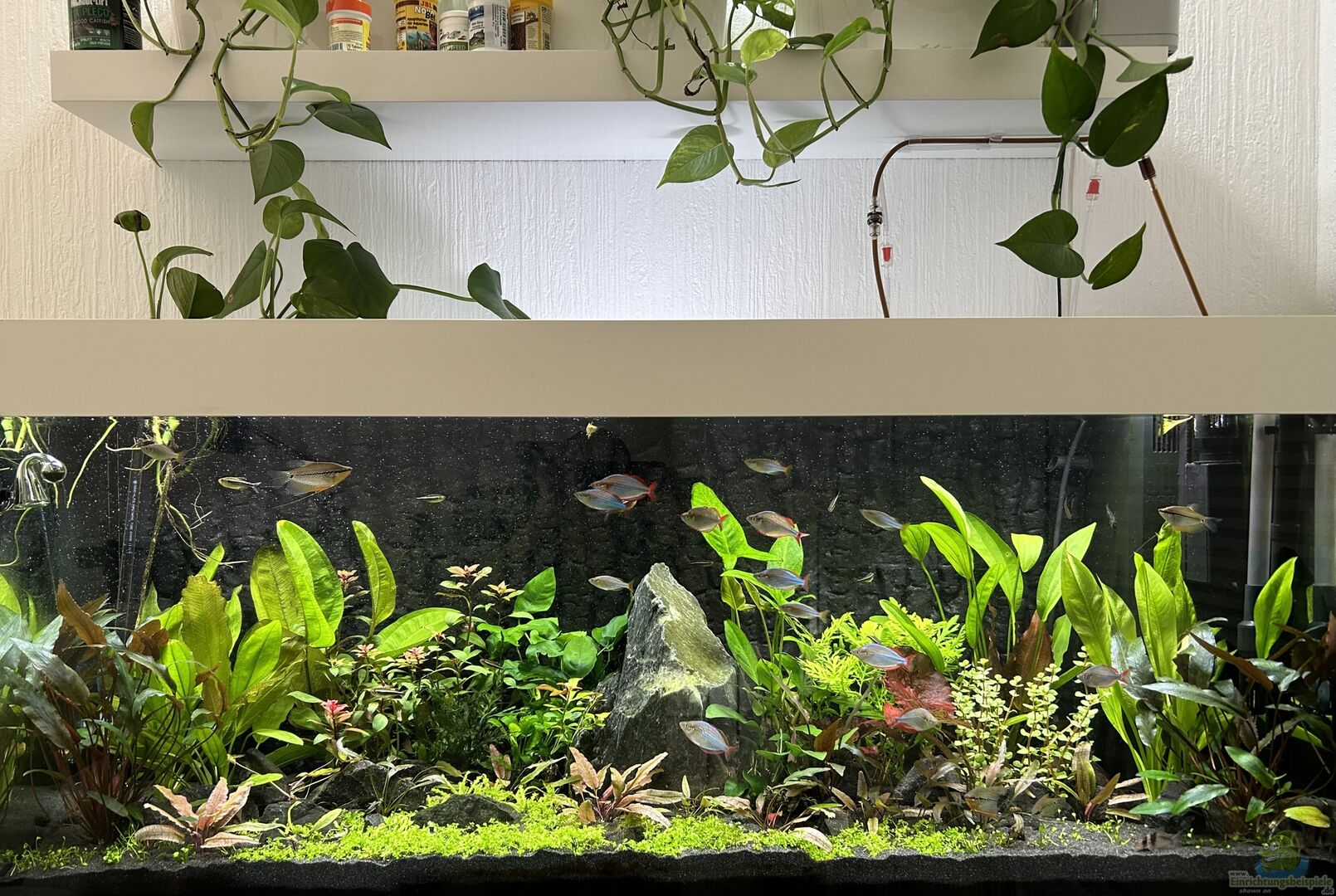 Rückwand Juwel STR mit wasserfestem Aquarienkleber angebracht….dahinter habe ich einen kleinen Führungskanal für den CO2 Schlauch geschnitten.