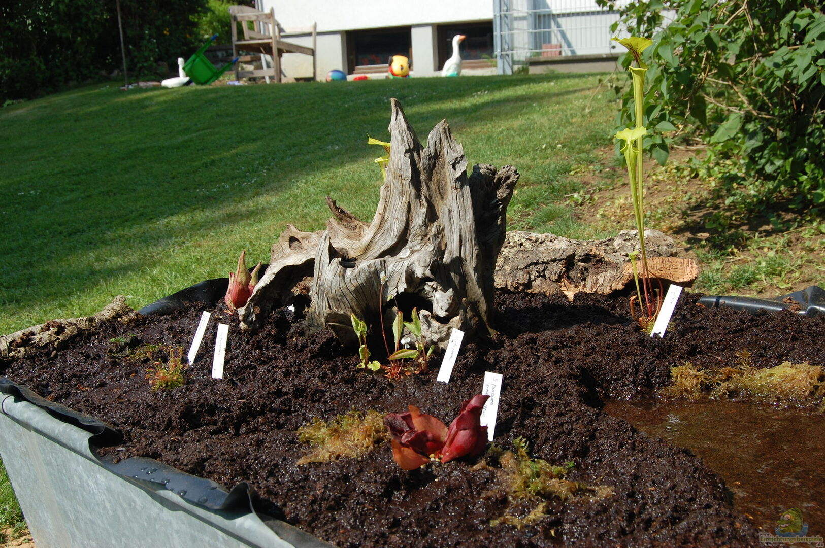 Das Moorbeet das ich hier vorstellen möchte, läuft seit 2014. Als Wasserspeicher in den heissen Sommermonaten dienen 2 umgedrehte 80cm im Durchmesser Blumenkübel aus Plastik. Ich hab diese mit mehreren grossen 1 cm grossen Löchern versehen, damit Wasser ein und austreten kann. Aufgefüllt wurde das Ganze mit wenig zersetzem Hochmoortorf, welches anschliessend mit Regenwasser aus der Tonne ca. 2 Wochen gewässert wird. Torf kann das siebenfache an Wasser aufnehmen, bis er endlich gesättigt [...]