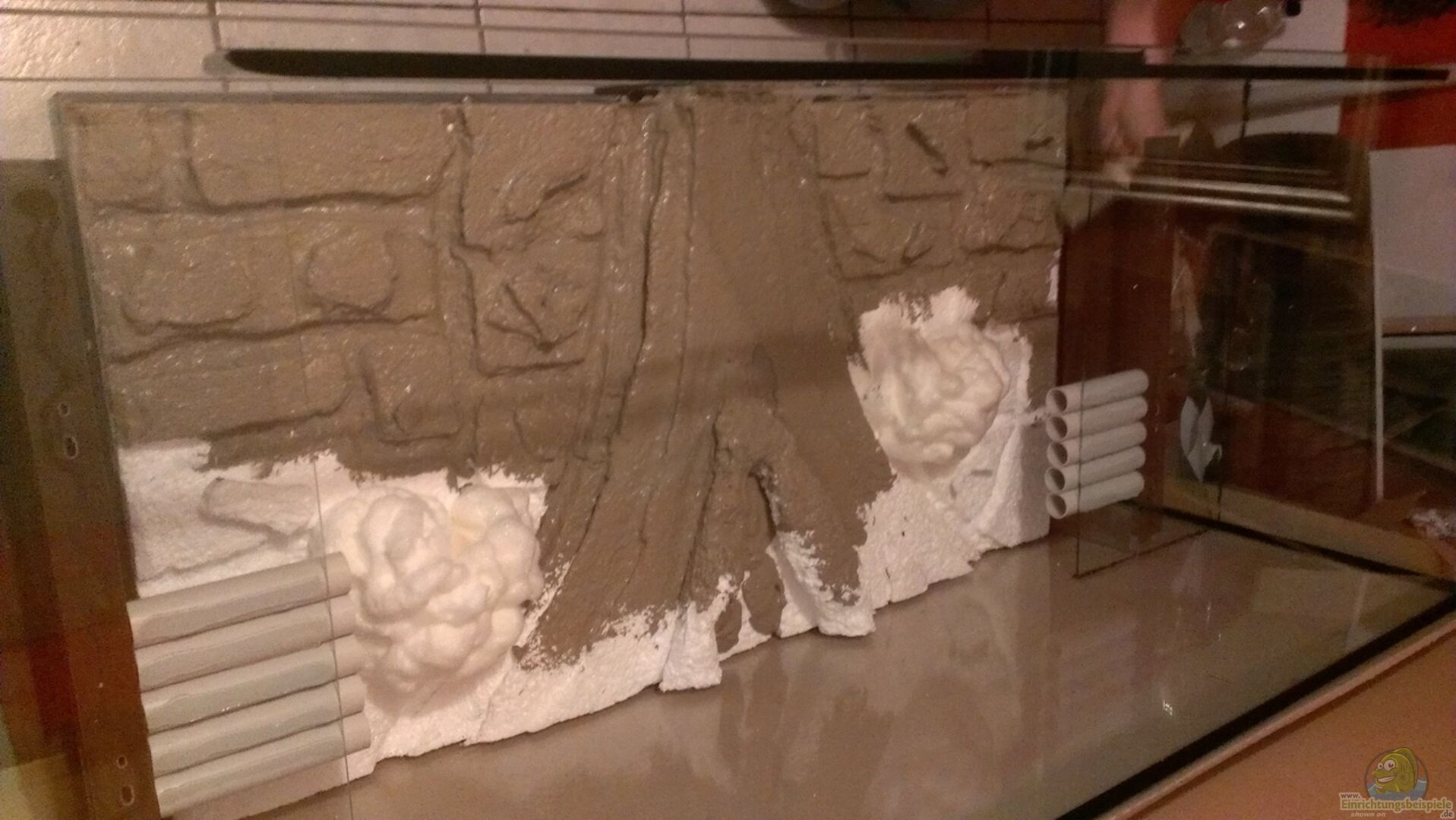 Selbstgebastelte 3D Rückwand aus Styropor und Fliesenkleber. Diese Rückwand hab ich nach dem Wassereinlauf wieder rausreisen müssen, die Farbe löste sich vom Fliesenkleber. Nach gründlicher Ursachenforschung kann es dafür nur eine Erklärung geben: die Restfeuchte des Flie??enklebers. Wenn man bedenkt, das Beton am Tag 1mm trocknet (hat mir ein Fachmann gesagt, bei idealen Bedingungen) hätte ich ja bei schlechten Bedingungen mindestens 14 Tage trocknen lassen müssen. Naja, wie schon einige [...]