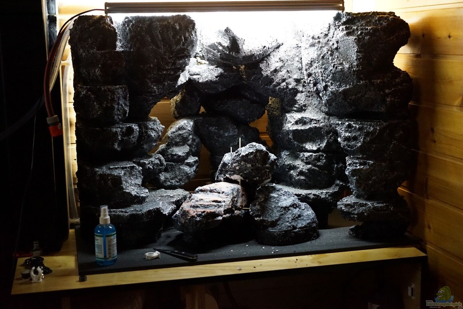 Selbstgebaute 3D Rückwand, die bis zu 35 cm zur Frontscheibe ragt und zahlreiche Höhlen und Spalten bildet. Simuliert Steinaufbauten bis zur Wasseroberfläche. Es gibt natürlich sehr schöne zu kaufen, aber die sind einerseits sehr teuer und zudem schon zu oft verbaut (in zum Teil wunderschön gestalteten Aquarien). Für mein AQ wollte ich aber etwas "spezielles" und au??erdem hatte ich richtig Lust das Ding zu bauen. Hatte mehrere Entwürfe gemacht, konnte mich dann von keiner [...]