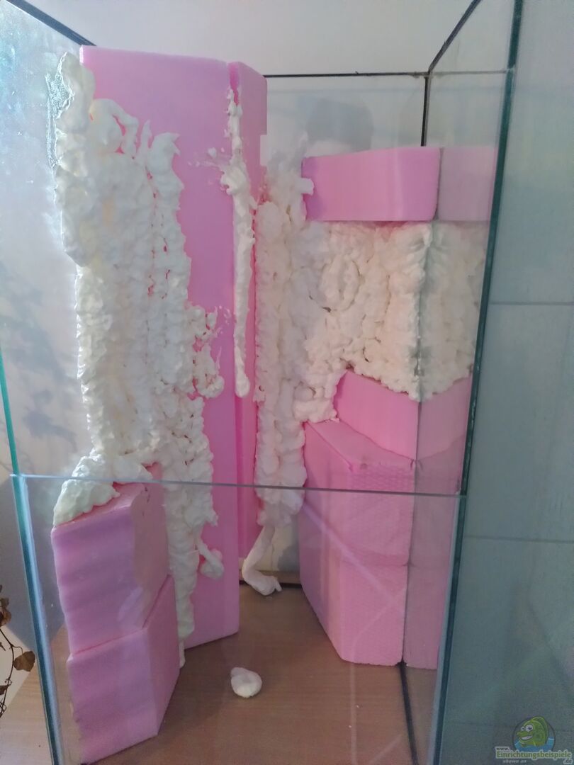 Es handelt sich um ein Standart 60cm-Becken, welches allerdings hochkant steht und vorne mit 2 30x30 cm Glasscheiben nachgerüstet wurde (unten verklebt, obere Scheibe als "Falltür"). Bei der ehemaligen Seitenscheibe, jetzt oben, wurden die Silikonnähte aufgetrennt; die Scheibe liegt jetzt lose auf.