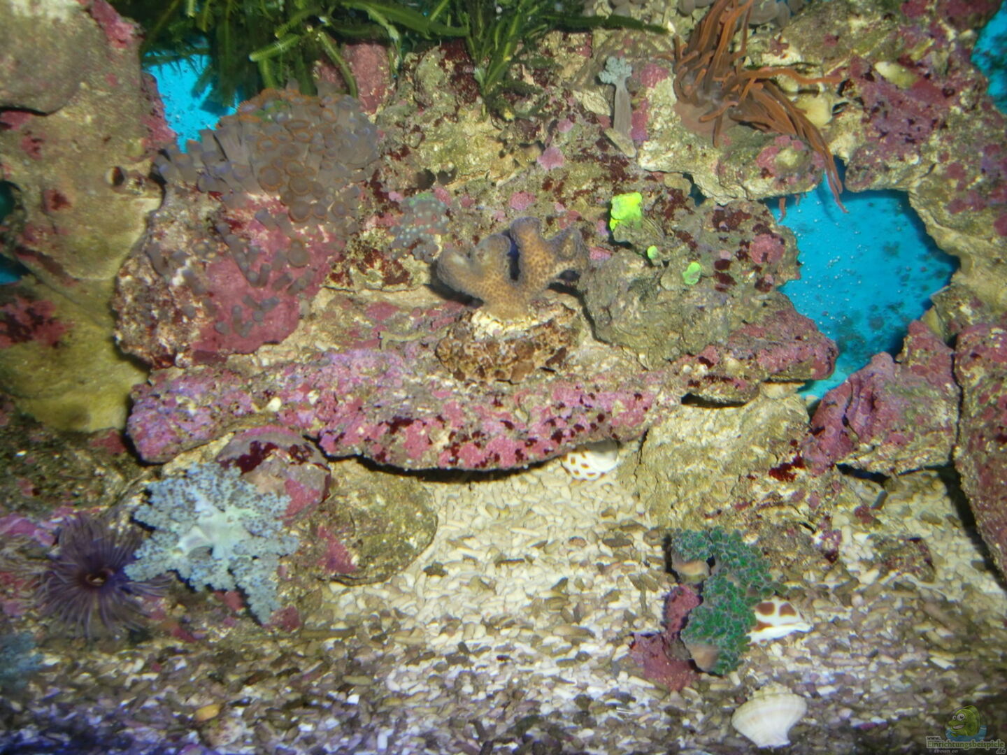 Filterbecken mit abfluss verbunden (wird umgebaut das der Abfluss zum teich geht) An der Aussenwand oben einen Abluftventilator angebracht und unten zuluftlöcher. In der Filterkammer ist Caulerpa taxifolia - Grünalge und wird wenn das Licht im Haupttank aus geht Beleuchtet (1x Aqua-Medic aquasunspot 12 W LED Spot) bis oben im Haupttank wieder das Licht angeht.