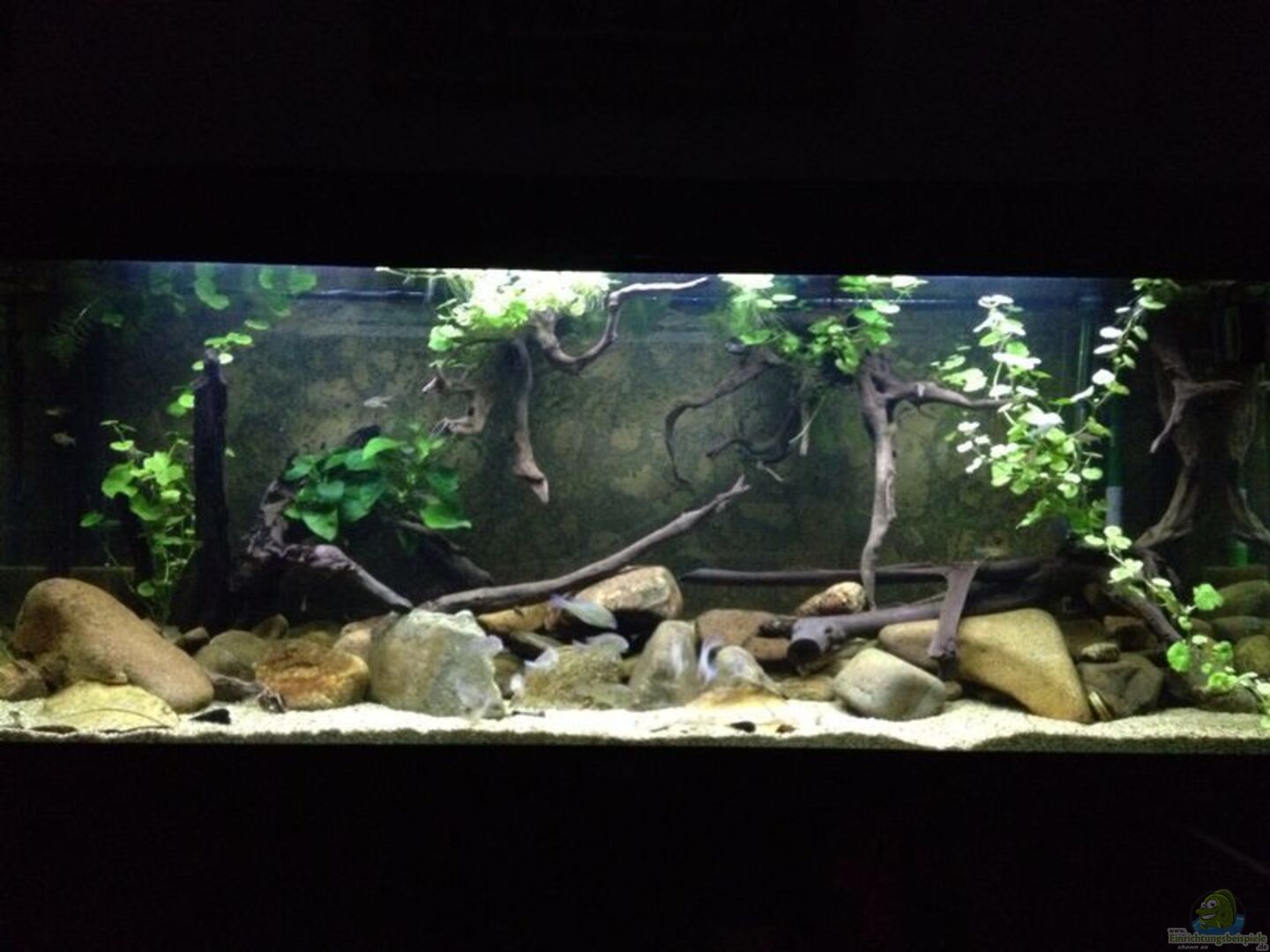 - das Aquarium ist ein RIO 400 von JUWEL incl Originalunterschrank in Nuss (ohne originalen Innenfilter) - schwarzes Gartenvlies als Rückwand - seitlich 1x schwarzes Gartenvlies, 1x Kork