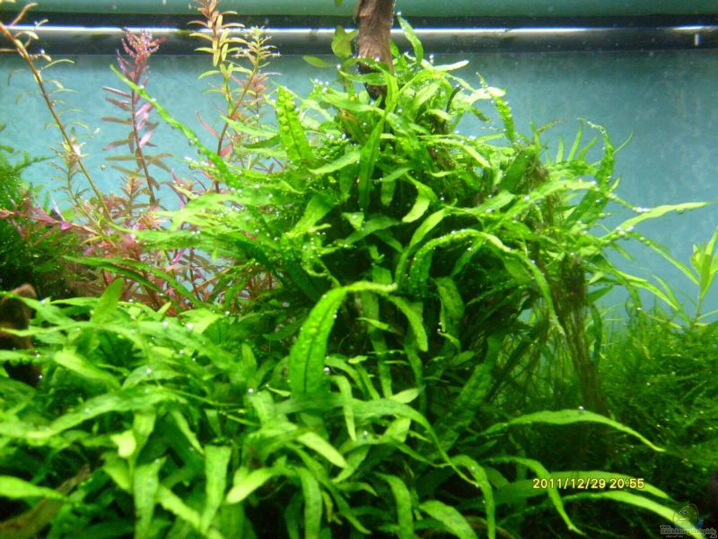 Vordergrund: - Cryptocoryne pechtii "pink" - Cryptocoryne parva - Hydrocotyle cf. tripartita (H. sp. "Japan")" - Wasserklee/Kleeblatt - Anubias barteri var. nana - Zwergspeerblatt - Fissidens fontanus - Phoenix Moos (auf Stein gebunden) - Riccia fluitans " - Teichlebermoos (auf Stein gebunden) - Eleocharis pusilla ("E. parvula"mini") -Zwergnadelsimse (mini) - Bucephalandra cf. motleyana "Melawi" [...]