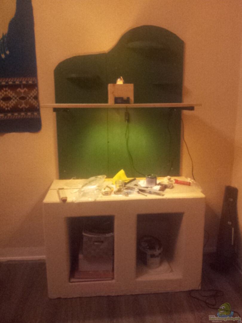 keine besonderen Ma??e o.ä.......es ist ein gebrauchtes Becken gewesen....Der Unterbau ist aus Gasbeton selbst gebaut und hat das Relief eines Gürteltieres an der Seite .....die Rückwand (au??erhalb des Beckens) ist auch Marke Eigenbau....aus Holz mit einigen Abstell-Ebenen für Pflanzen.....Hinter dem Becken ist schwarzer Bastelkarton angebracht...