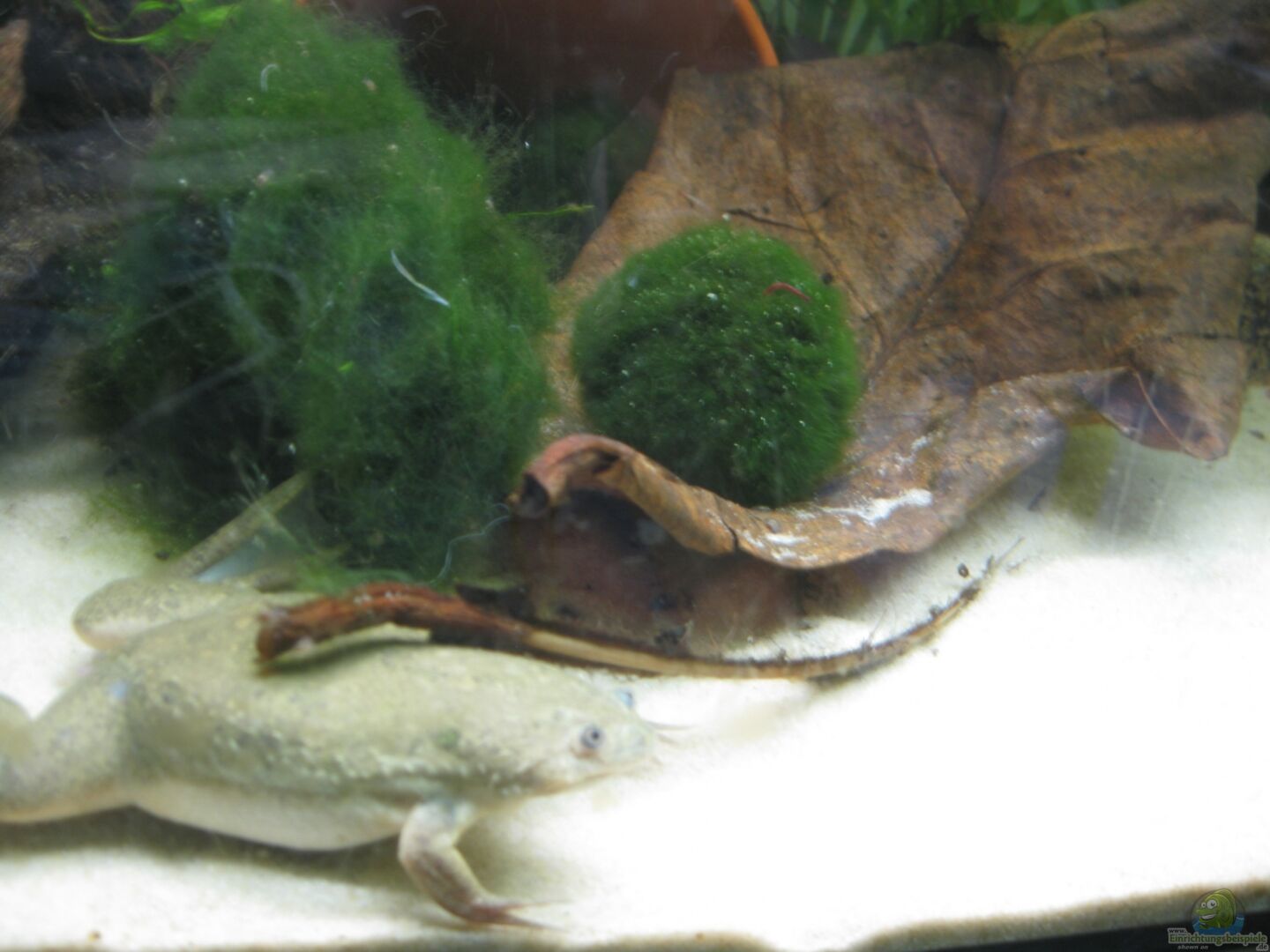 Momentan befinden sich folgende Pflanzen im Becken: Speerblatt - Anubias sp. Javafarn - Microsorum pteropus Riesenvallisnerien - Vallisneria gigantea Wasserpest - Elodea (Egeria) densa Mooskugel - Cladophora aegagrophila Haarnixe - Cabomba caroliniana Pfennigkraut - Lysimachia nummularia Wasserlinsen - Lemna minor Javamoos - Taxiphyllum barbieri "grasartiges Etwas - Name ist mir unbekannt" Ich hoffe sehr, da?? wenigstens ein Teil der Bepflanzung den Krallenfröschen [...]