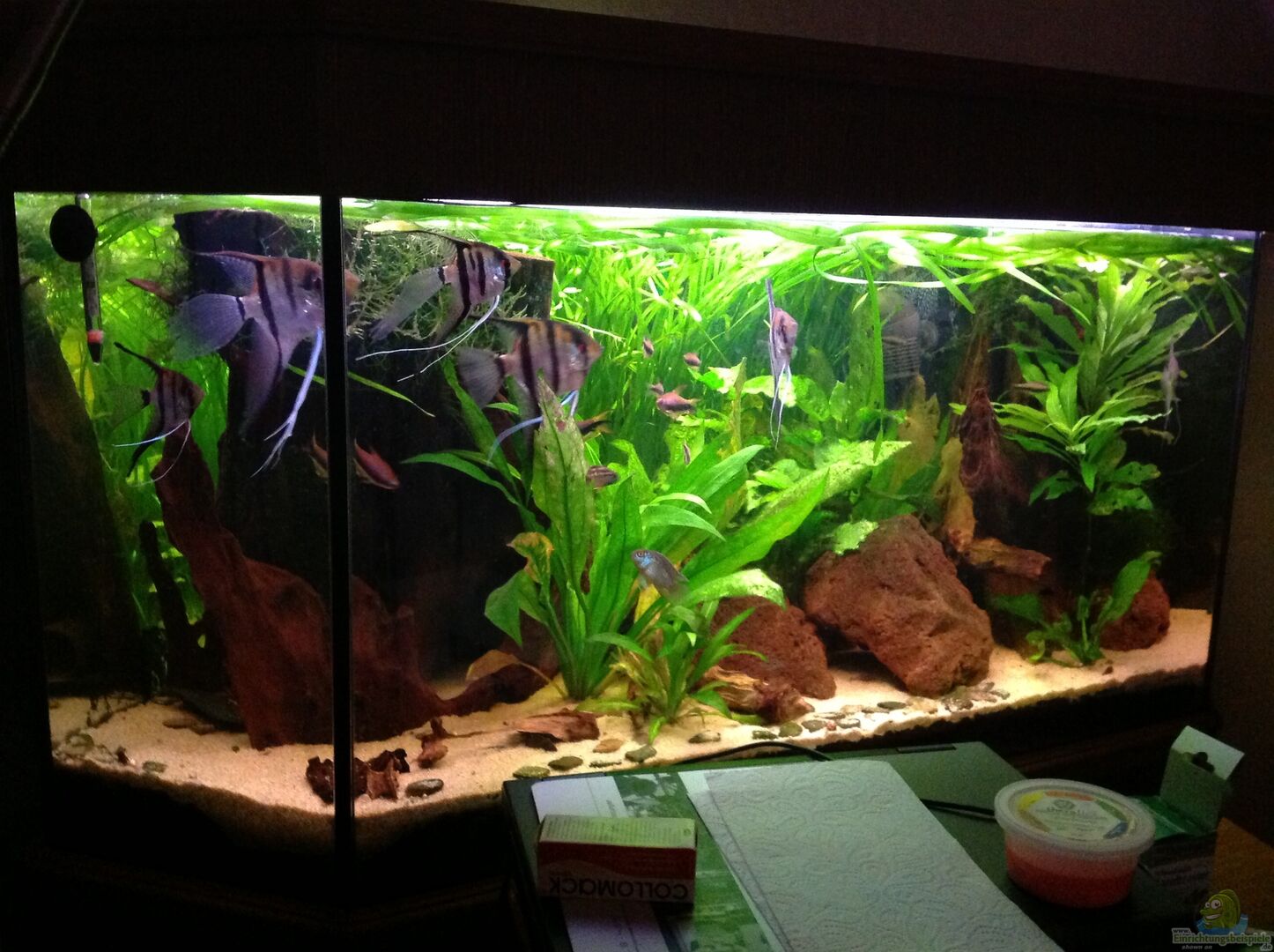 Es handelt sich um ein Eckaquarium nach altem Schlag ohne gebogene Frontscheibe. Das Aquarium ist mit einer Juwel Stone Granite Rückwand ausgestattet die mit Juwel Conexo verklebt wurde. Das Becken ist zwar schon seit 1997 in Betrieb, wurde aber diverse Male umgebaut, zuletzt im September 2017.