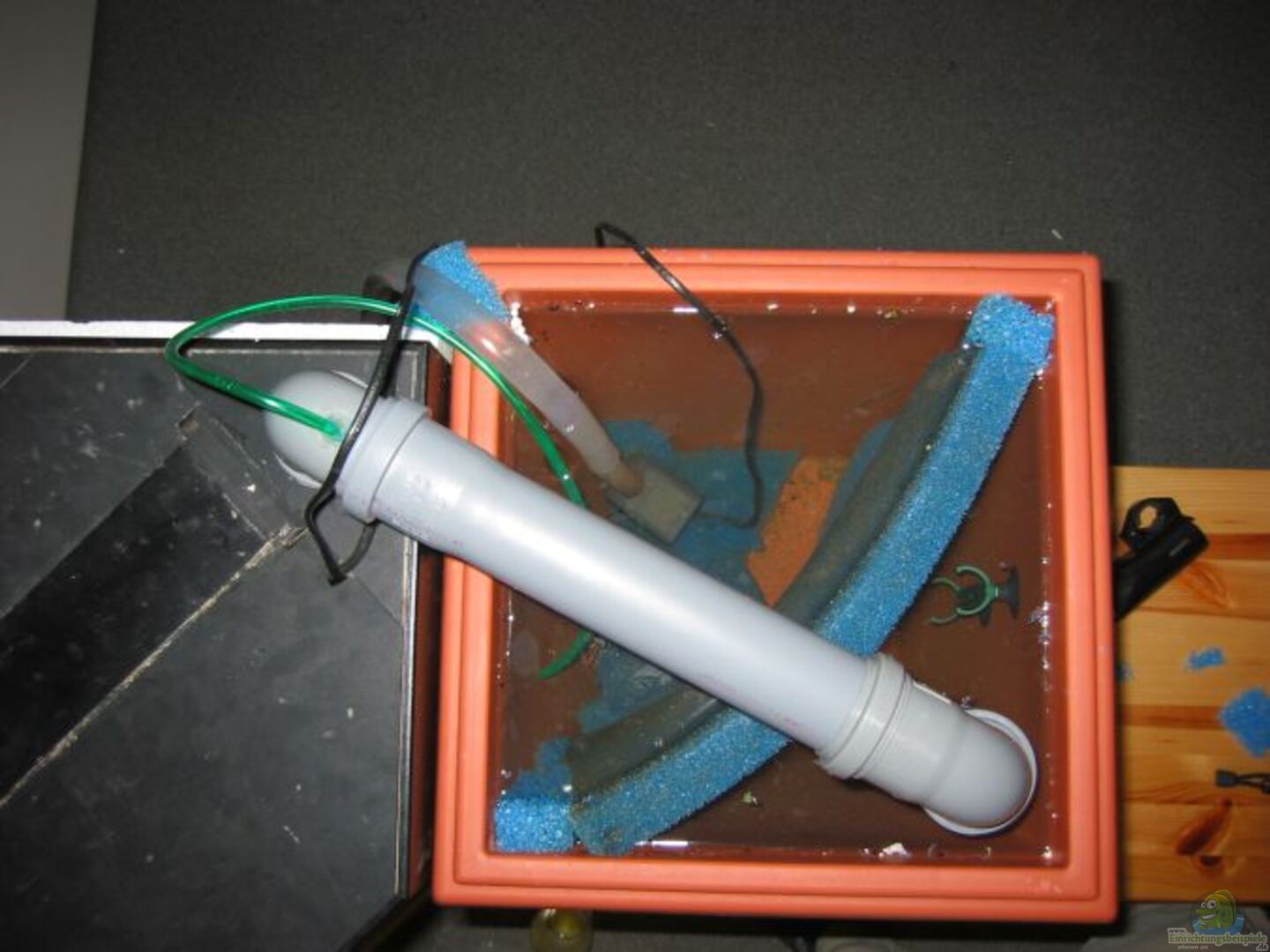 Heizer 150W selbstbau Schnellfilter (600l/h Pumpe (JBL) mit Filterwatte und Fliegengitter drum)