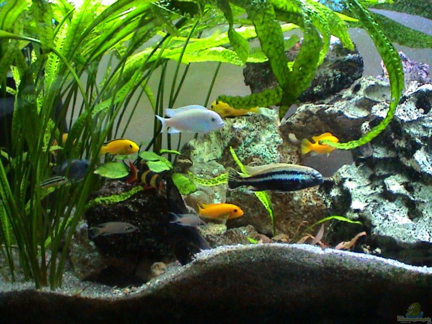 6 Labidochromis caeruleus (Yellows) 2/4 + einige Jungtiere 3 Metriaclima esterae 1/2 + einige Jungtiere 3 Melanochromis auratus (Türkisgoldbuntbarsch) 1/2 2 Cynotilapia afra 1/1 3 Synodontis Multipunktatus + einige Jungtiere einige Ancistren
