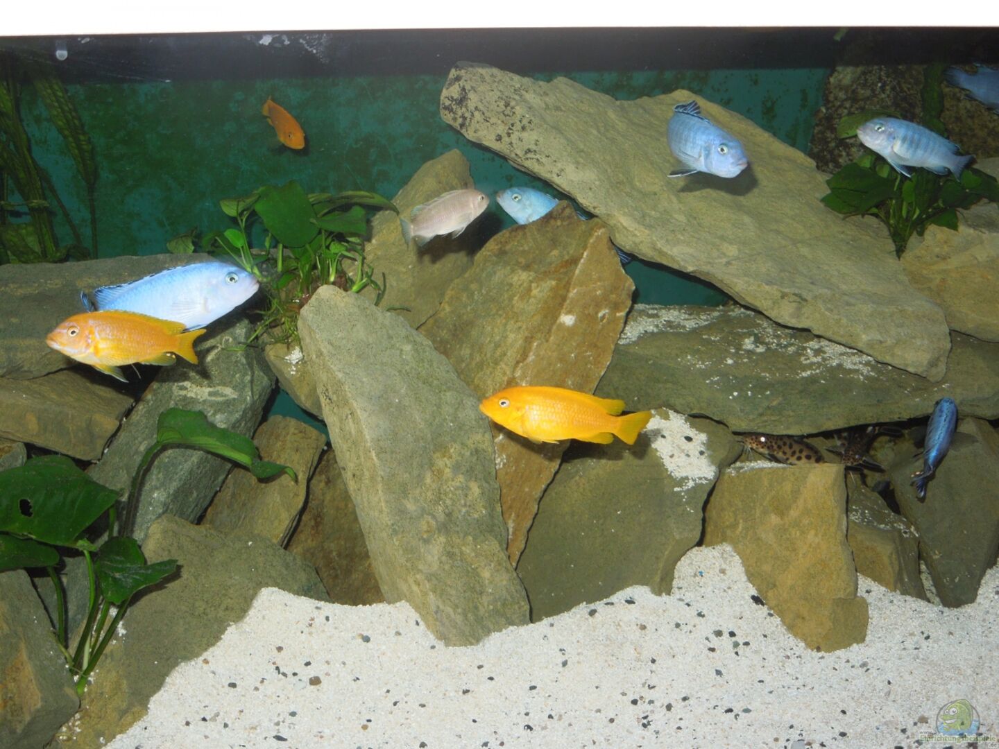 -------- Ich pflege in meinem Malawibecken Metriaclima, Pseudotropheus, Cynotilapia sp.Lion Sanga, Sciaenochromis ahli und Synodontis Multipuncatus. Ich habe mich bewusst für drei grö??ere Gruppen endschieden, weil hier das Sozialverhalten der einzelnen Gattungen besser zur Geltung kommt. Ich wei?? dass der Sciaenochromis nicht in einem Mbuna Becken gehalten werden sollte, da er andere Ansprüche an das Futter hat. Den Ahli pflege ich in meinem Becken, um die rasante Vermehrung [...]