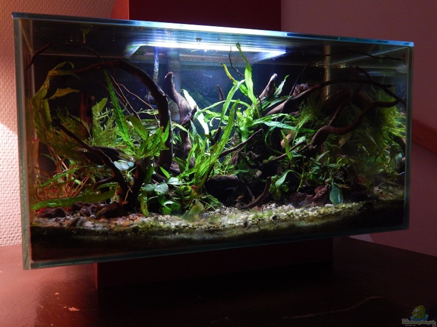 Es ist fast nichts eigepflanzt sondern die aller meisten Pflanzen (au??er den wenigen Cryptocorynen in den Ecken) sind auf den handlichen Wurzelstücken aufgeklebt. Ich kann so die nahezu gesamte Einrichtung binnen weniger Minuten aus dem Becken entnehmen. Ein echter Vorteil wenn man wei?? wie klein die ??ffnung vom Edge ist. Au??erdem kann ich so das Becken in kürzester Zeit nach Belieben umgestalten.