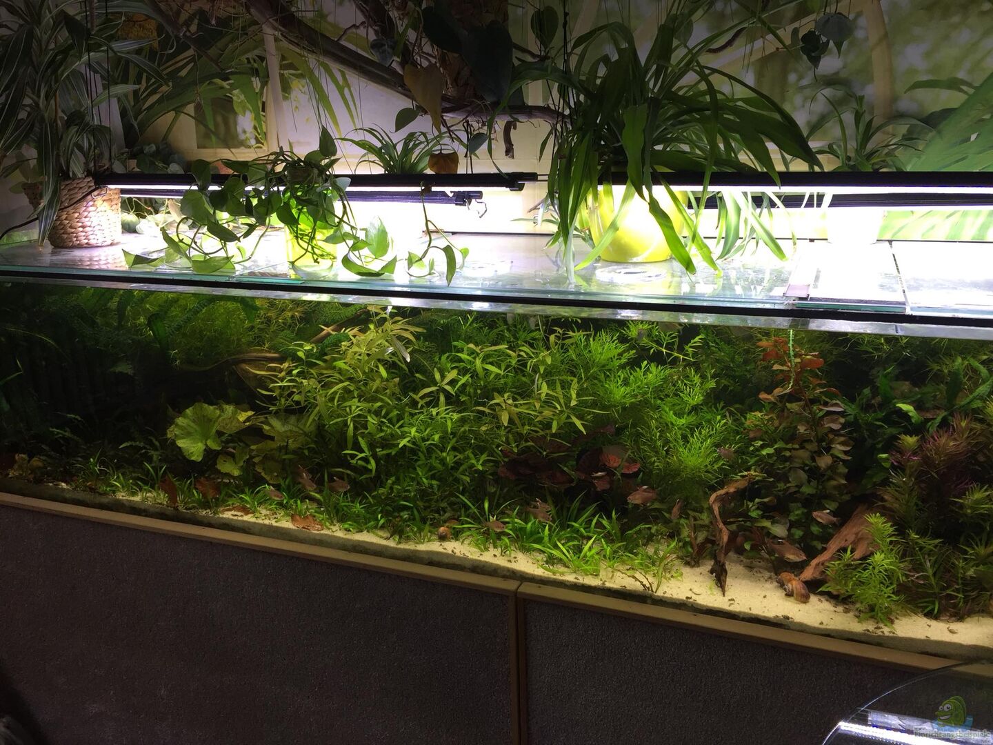 Das Becken steht auf einem Holzunterbau, der einen Teil der Last an eine tragende Wand überträgt. Es liegen 3 Glasplatten als Abdeckung darauf. Da in diesem Zimmer auch Vögel frei fliegen, und über dem Becken Pflanzen hängen, ziehe ich bei meiner Abwesenheit einen Store vor, der die Tiere daran hindert über das AQ zu gelangen. Sind die Vögel irgendwann nicht mehr, komnmt der sofort weg...^^ Als Verblendung habe ich Holzplatten mit Teppich beklebt, inkl. Zierleiste. Diese haften [...]