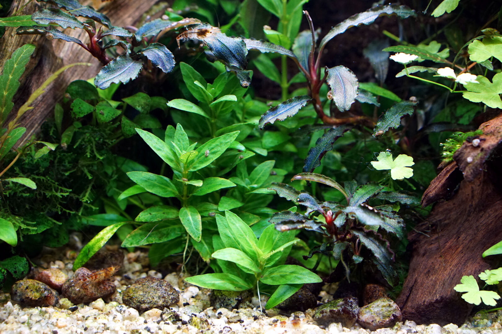 1. Rotala wallichii 2. Ludwigia repens 3. Bucephalandra sp. 'Kedagang' 4. Hygrophila pinnatifida 5. Rotala rotundifolia 6. Anubias barteri var. nana 'Petite' 7. Microsorum pteropus "Needle Leaf" 8. Hemianthus callitrichoides "Cuba" 9. Riccardia spp. 10. Cryptocoryne wendtii 11. Cryptocoryne ?? willisii "nevillii" 12. Hydrocotyle cf. tripartita 13. Staurogyne repens 14. Limnobium laevigatum 15. Bucephalandra sp. "Mini [...]