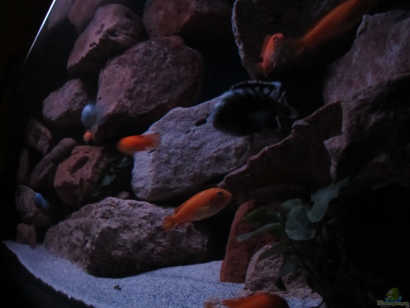 Das Aquarium ist aus 10 mm Floatglas. Die Kanten sind geschliffen, sto??verklebt und mit einer Sicherheitsnaht versehen. Der Unterschrank wurde von meinem Vorgänger selbst gebaut. Auf ihm ist eine Art Auffangschale (ca.15cm hoch). In dieser sind Ablaufschlitze eingebracht. Im Unterschrank ist ein Auffangtank integriert. Falls das Becken ausläuft, wird das Wasser dort aufgefangen. ==================================================================