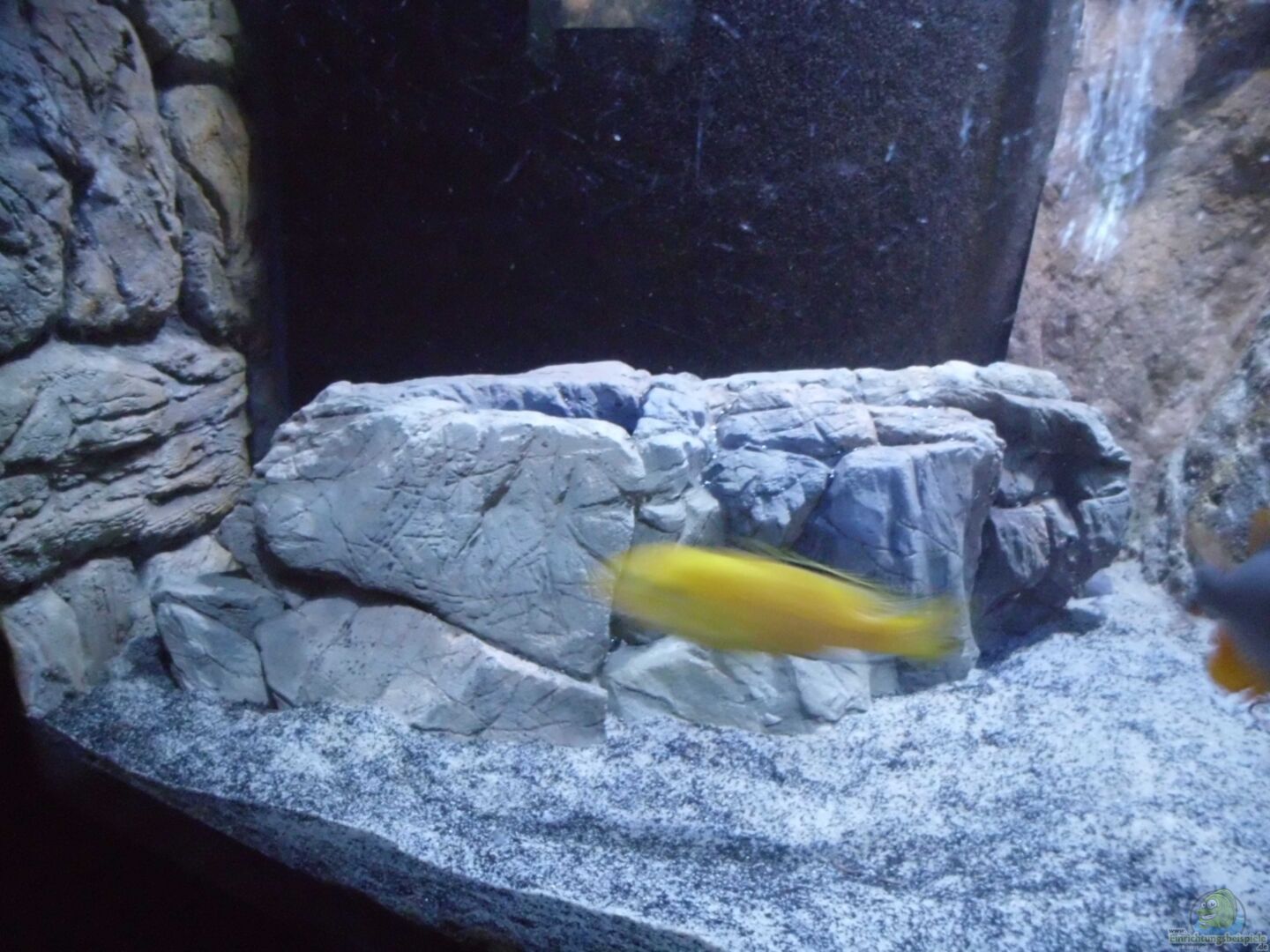 Glasfaser-Strukturrückwand, max. Tiefe 3cm. 120cm lang, 2. Strukturrückwand an der linken Stirnseite als Sonnenschutz, ca. 50 x 24 cm hoch/breit 4 künstliche Felsen aus GfK 2 künstliche Steine aus GfK mehrere grö??ere Flu??kiesel aus der Umgebung Steine stehen auf einer 10mm-Styroporplatte Der eine Kunstfelsen steht auf der linken Seite an der Rückwand und wurde so eingebaut das er noch hinterschwimmbar ist. Zusätzlich habe ich beim letzten TWW einen der künstlichen Steine [...]