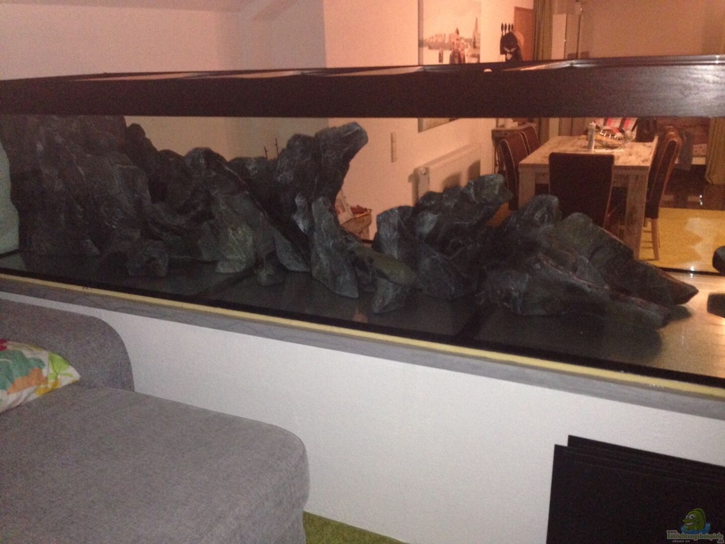 Die komplette Inneneinrichtung, welche den Basaltstein immitiert, soll einen ??bergang von der Felszone in die Sandzone darstellen. Hierbei war es ir wichtig den Filterschacht so gut wie möglich zu verstecken, was glaube ich hierbei gut gelungen ist. Die Herstellung dieser Kunststeine habe ich der Aqua Inneneinrichtungsfirma Aquadecor Backgrounds zu verdanken