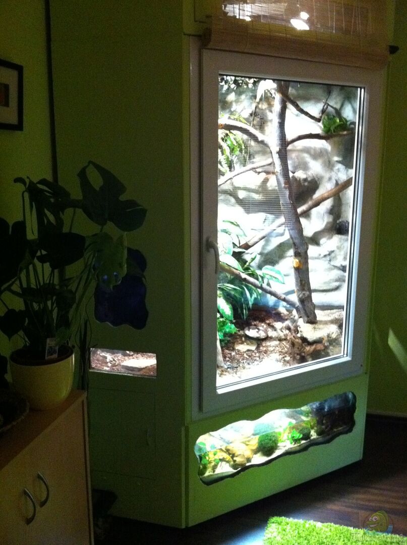 Regenwald Paludarium mit Aquarienteil - Zerlegbar in nur 7 einzelne Teile + ??ste: - Fenster (dreifach verglast) - Deckel mit Lichtkasten - Unterteil auf Rollen - zwei lange Seitenteile mit den Service Klappen - zwei aufgesetzte hintere Platten jeweils mit einer Platform - alles geschraubt mit Stehbolzen und Muttern, ??ste mit "Theater Scharnieren" befestigt und daher alles nahezu ohne Werkzeug zerlegbar. - Das ganze Paludarium steht auf Schwerlastrollen - [...]