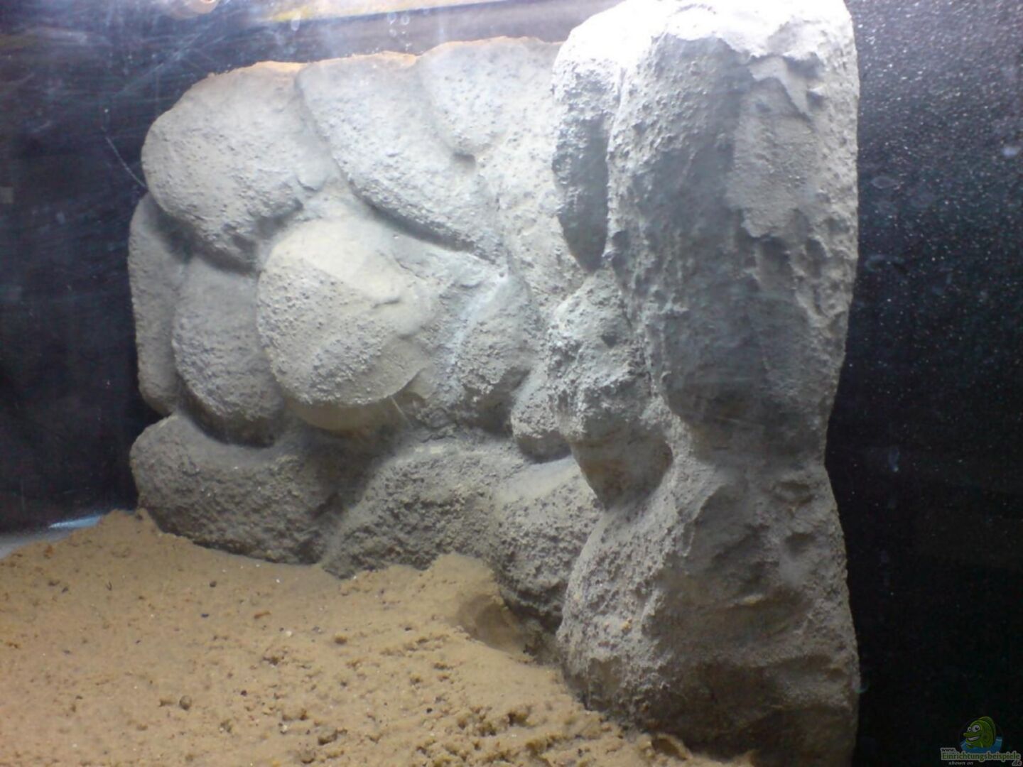 ca. 80 Schneckenhäuser (Weinbergschnecken aus dem Lebensmittelfachgeschäft) Die Betonrückwand habe ich weder farblich behandelt noch versiegelt, da auf ihr mit Sicherheit eine Menge Algen wachsen werden und Beton alkalisch ist, was den Wasserwerten nicht nur nicht schadet, sondern eher noch gut tut. Die Wand wurde auf einem Styroporträger mit Beton (1:3) modelliert und anschlie??end mit Zement sowie Sand bestreut. Das Styropor wurde ganz oder zu einem gro??en Teil geschmolzen und entfernt. [...]