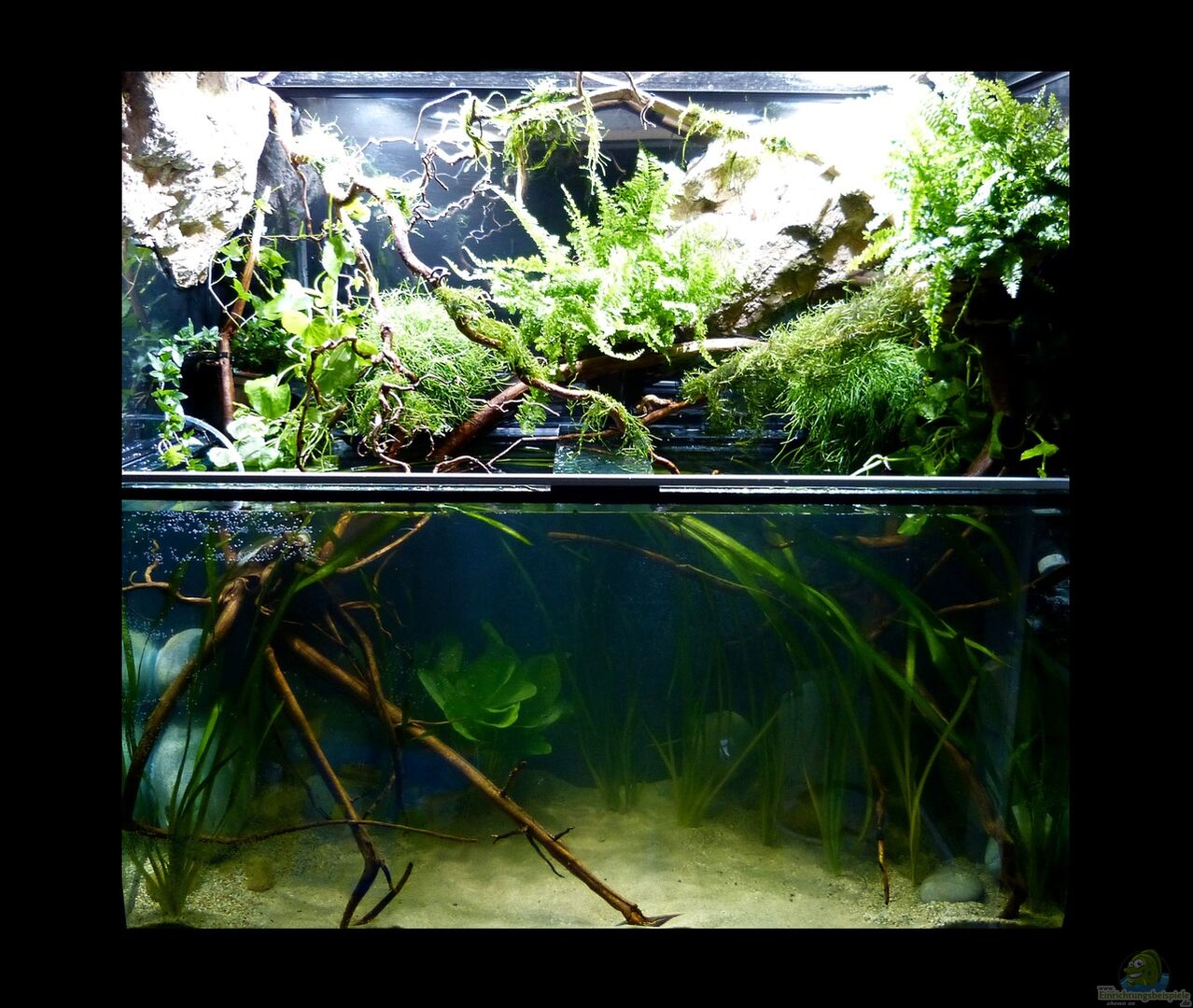 Es handelt sich um ein Paludarium. Der Wasserteil ist hierbei 120x50x60cm und der Landteil 120x50x50cm gro??.