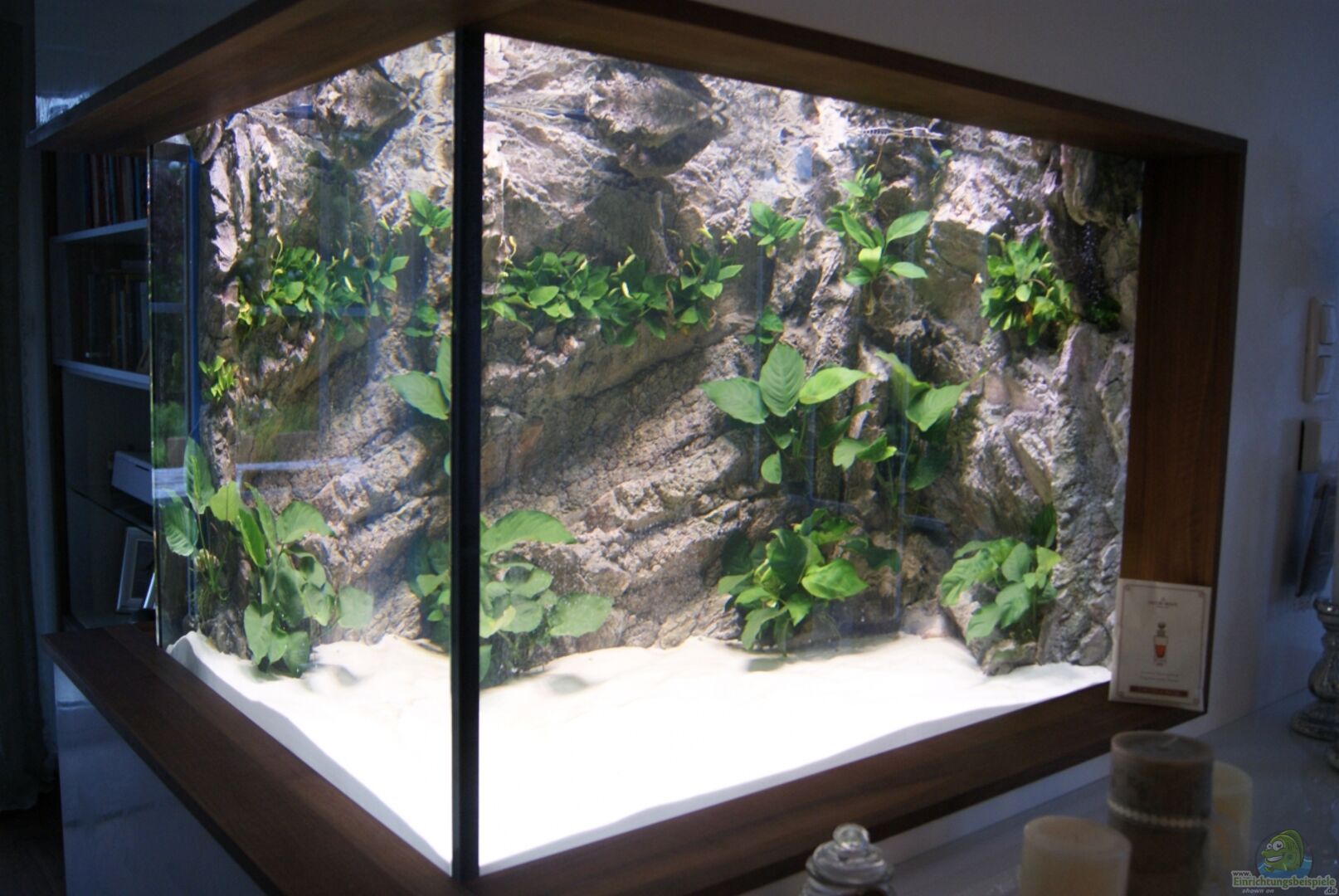 Die Rückwand von , , Rock Zolid" wurde der Beckenhöhe angepasst und zurechtgeschnitten. Die ??bergänge mit Blitzzement und Abtönfarbe angepasst. Innenliegende Filterkammer 20x20 mit zwei Bohrungen 45/60 mm.